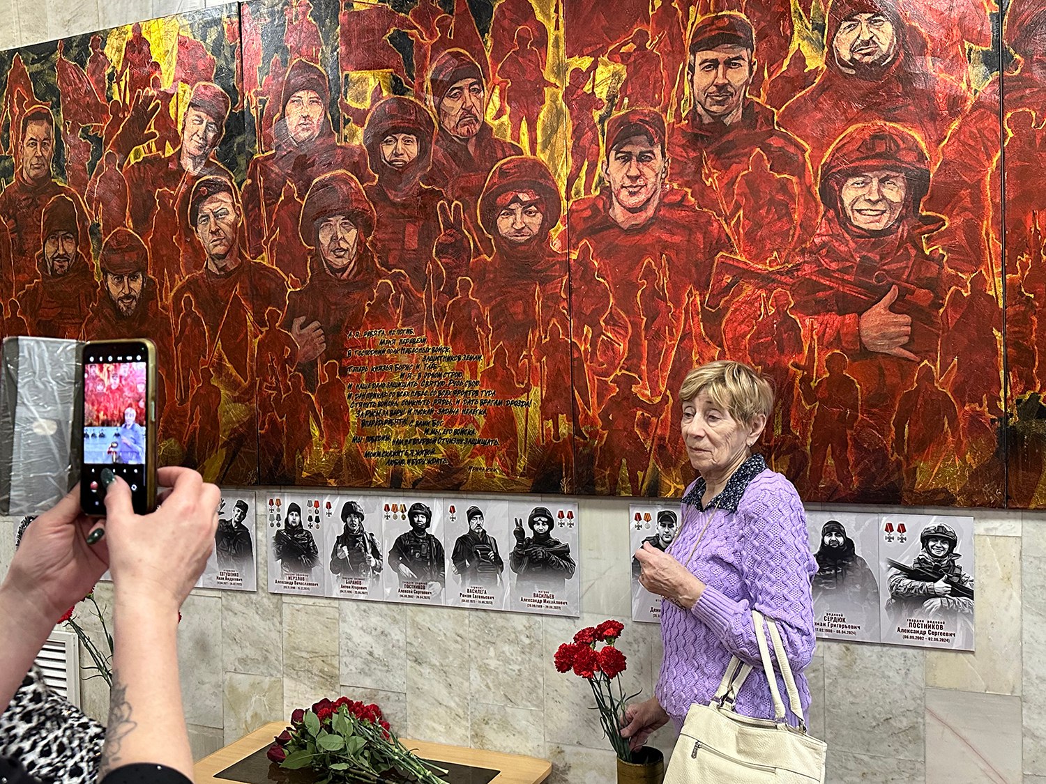 Произведение посвящено магаданцам-героям специальной военной операции. На пяти полотнах – 20 портретов отцов, мужей, сыновей, вставших на защиту Родины и не вернувшихся из боя. Художник создавал эти образы по фотографиям, предоставленным родными и близкими погибших – они увидели монументальное произведение первыми.