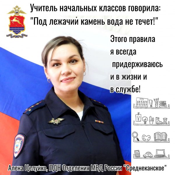 Инспектор по делам несовершеннолетних Отделения МВД России «Среднеканское» Алена Целуйко с теплотой вспоминает педагога начальных классов, которая часто повторяла, что под лежачий камень вода не течет.