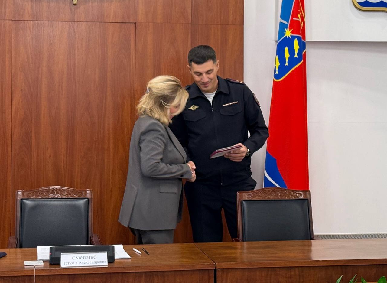В начале мероприятия временно исполняющий обязанности начальника полиции УМВД Дмитрий Мринский вручил заместителю председателя регионального Правительства Татьяне Савченко юбилейную медаль – 90 лет подразделениям по делам несовершеннолетних МВД России.Полковник полиции отметил значимый вклад Татьяны Александровны, возглавляющей областную КПДН, в проведение совместной профилактической работы с юными колымчанами.