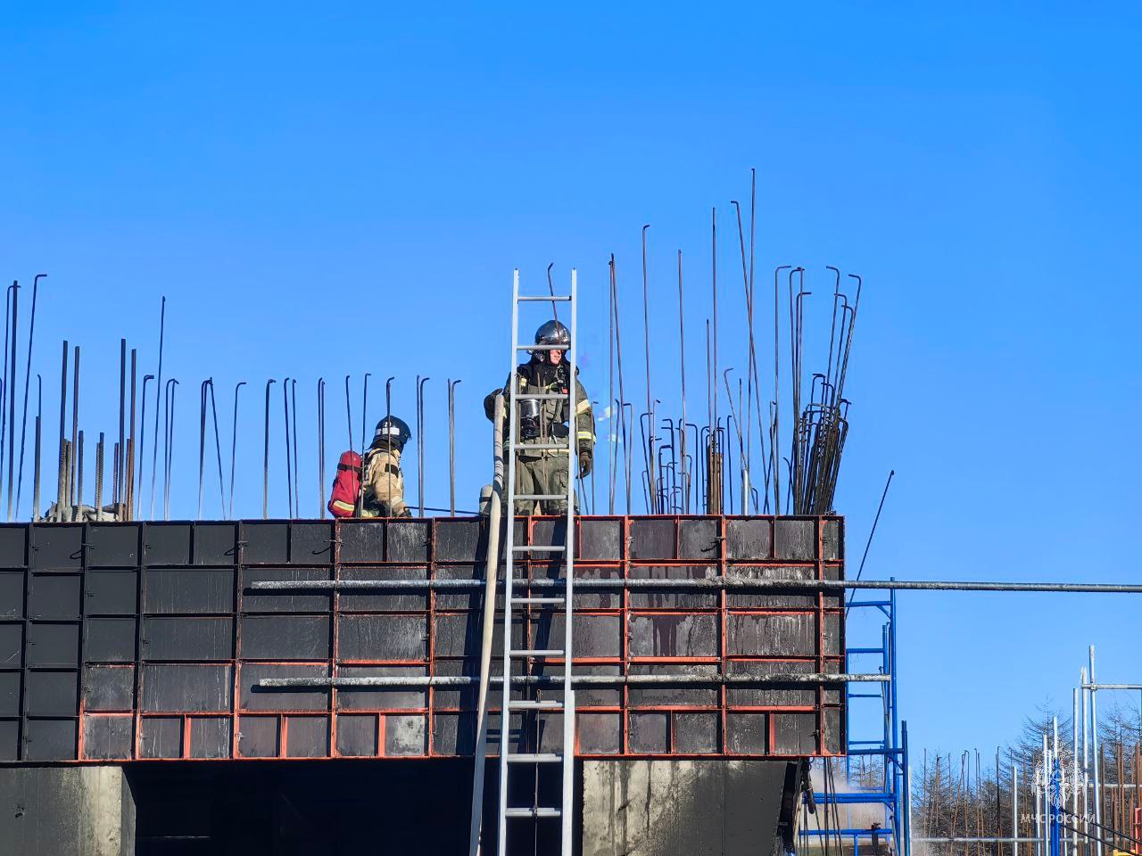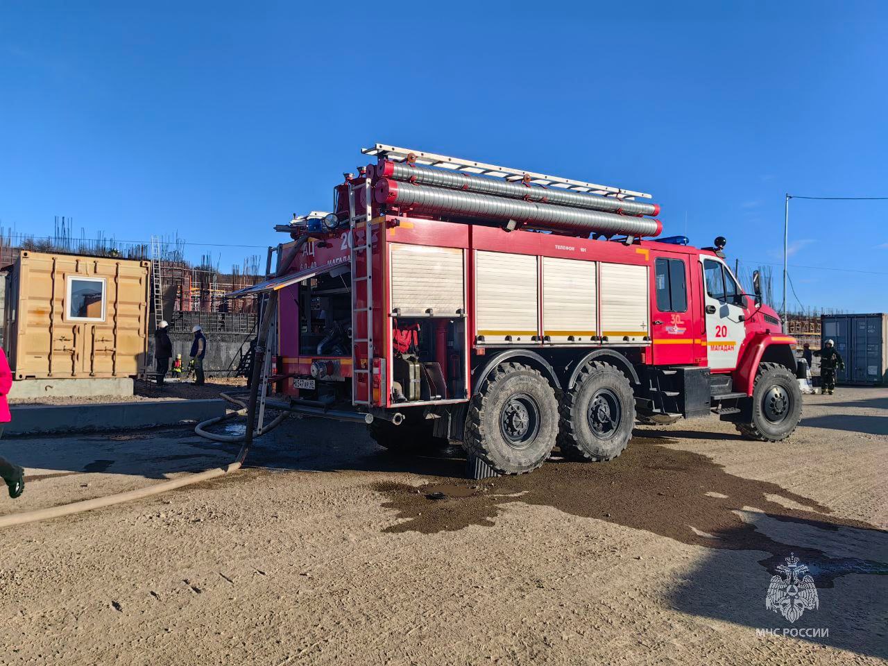 Утеплитель загорелся на стройке в Магадане