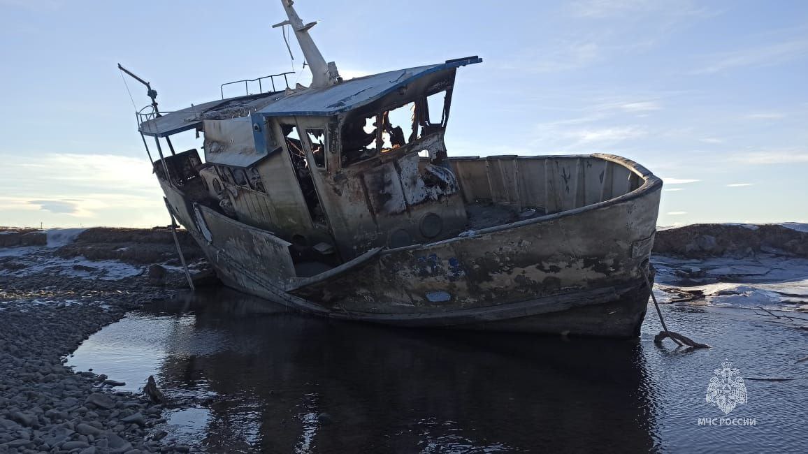 В п. Эвенск на берегу реки Большая Гарманда загорелся бесхозный катер на площади 20 квадратных метров.