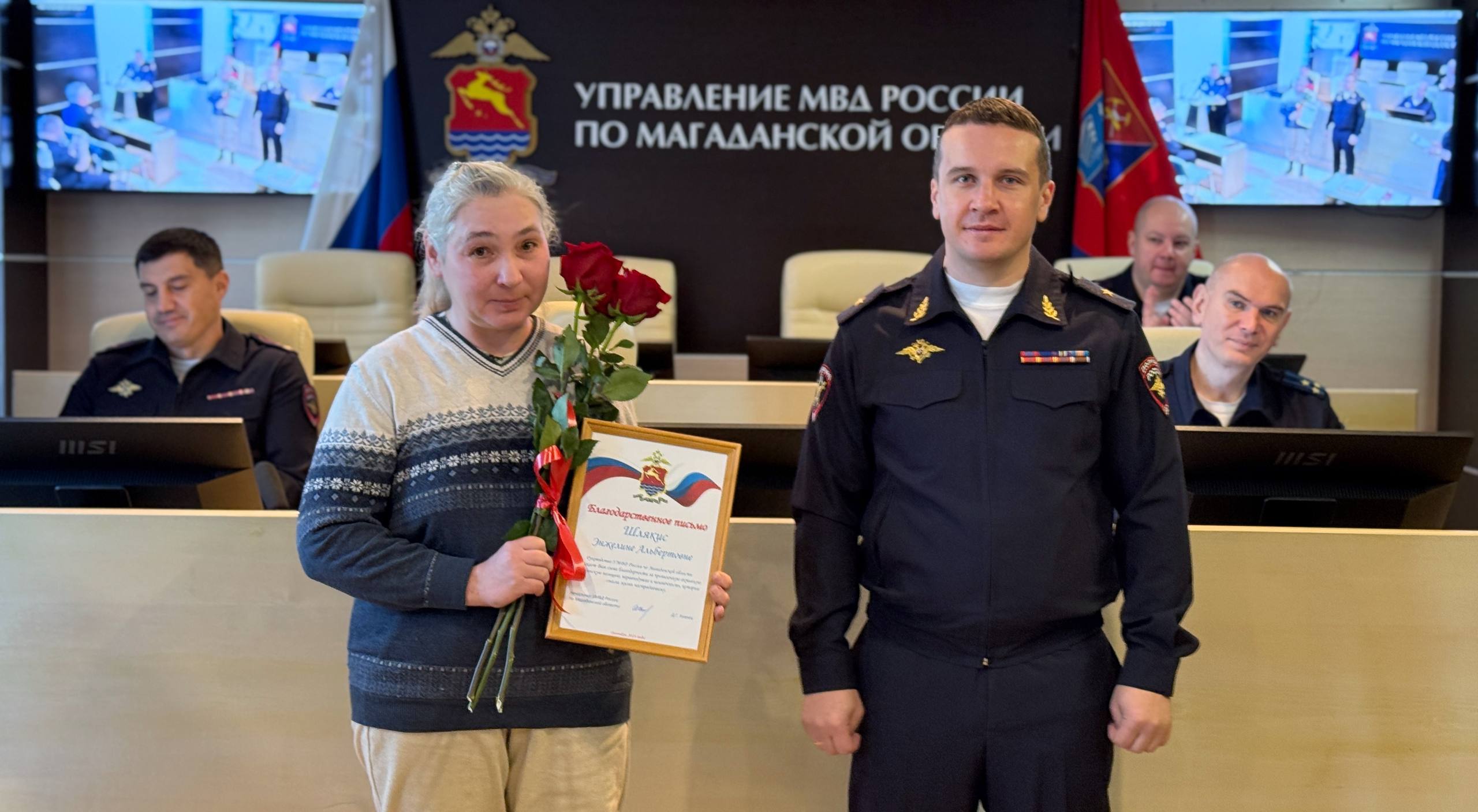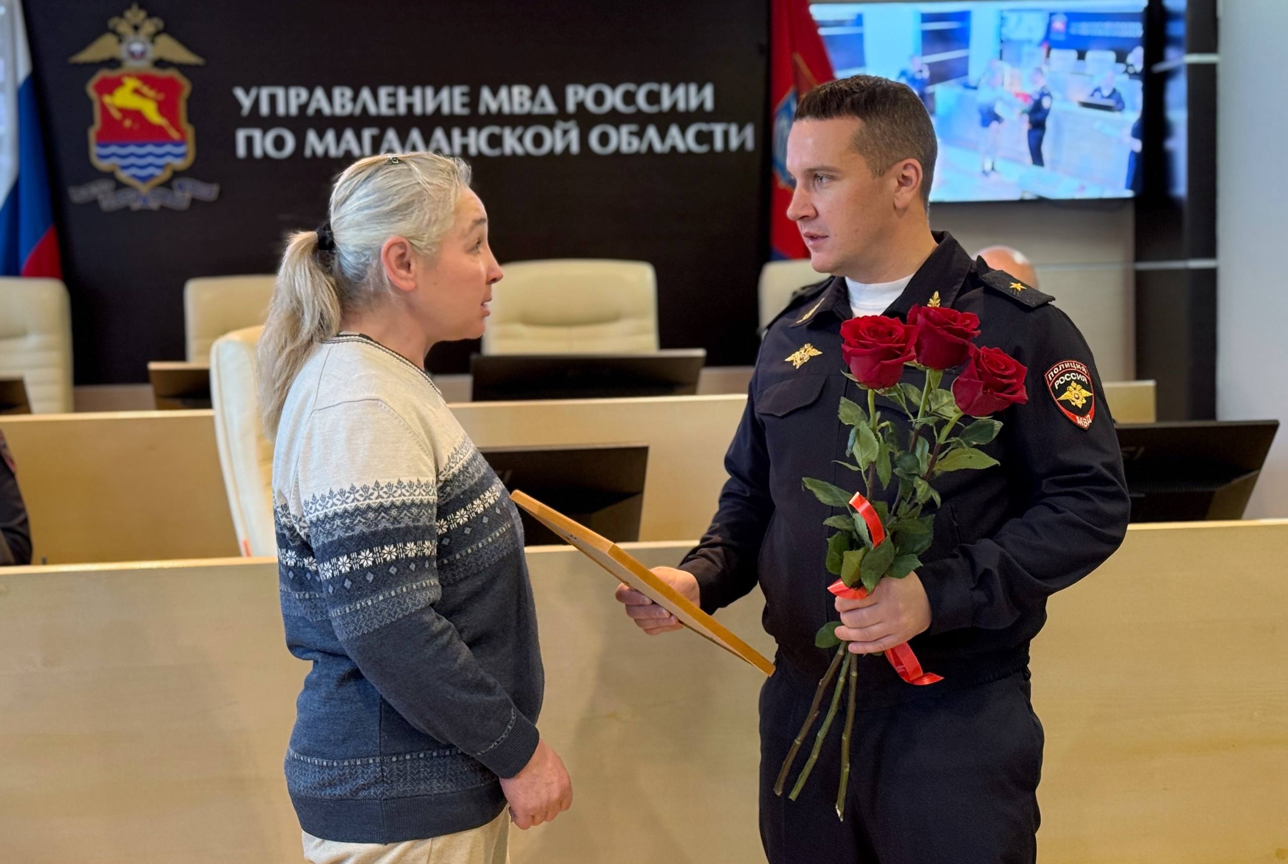 В Магадане полицейские наградили жительницу поселка Стекольный, которая спасла раненую землячку