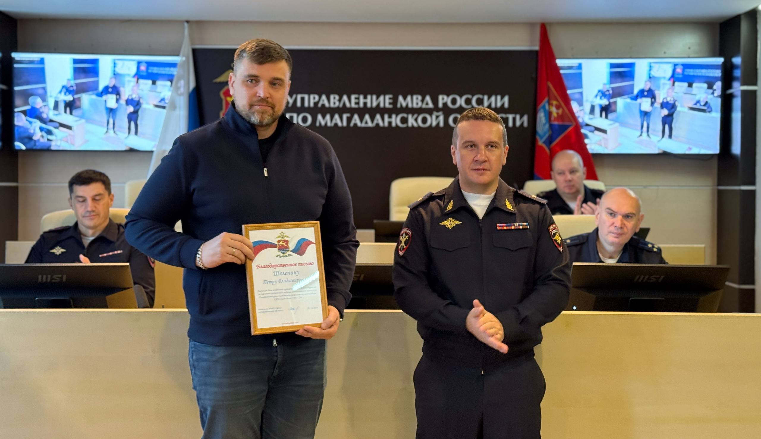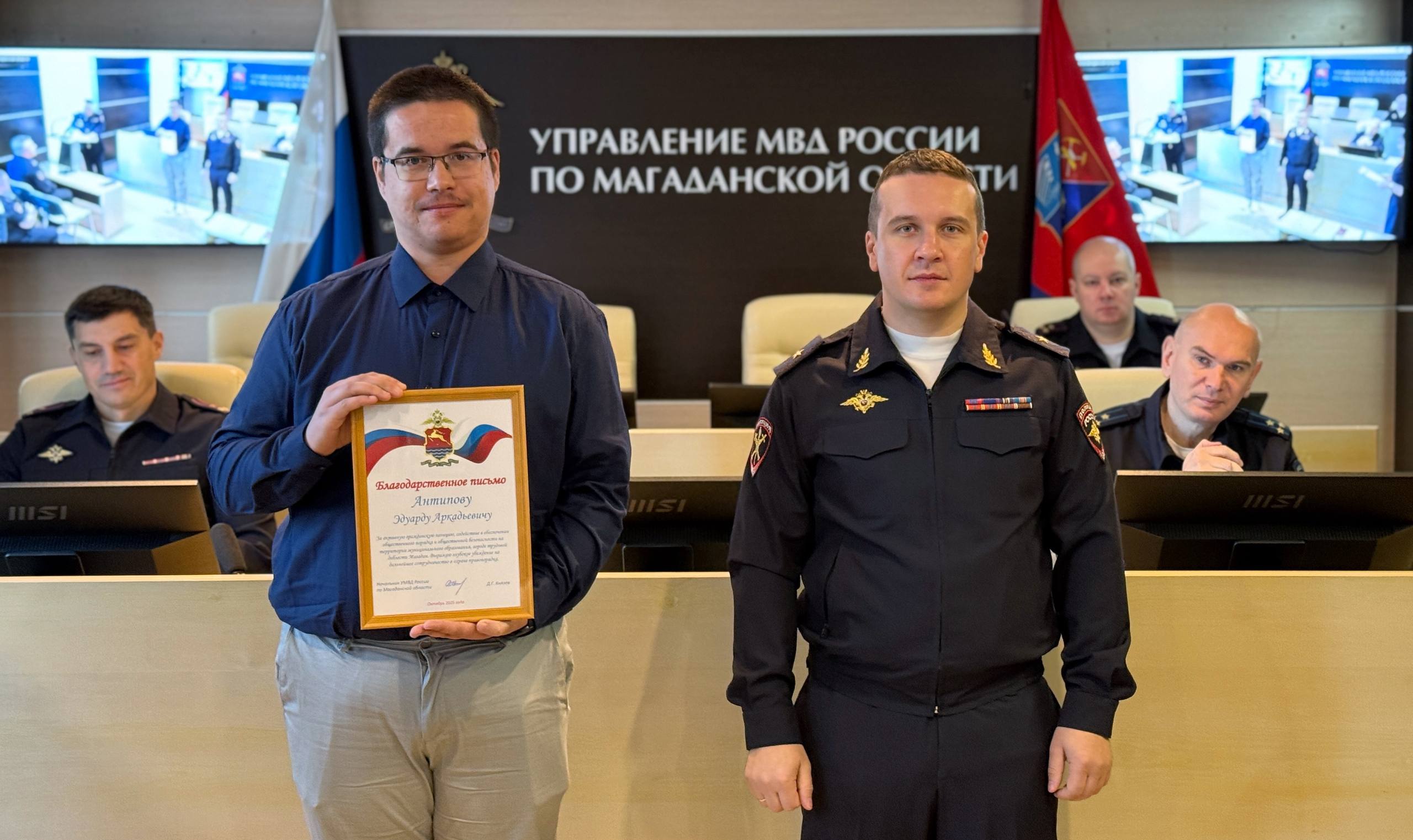В ходе мероприятия начальник УМВД России по Магаданской области Дмитрий Князев также вручил благодарственные письма представителям добровольной народной дружины города Магадана Эдуарду Антипову и Дмитрию Лебедеву, которыми совместно с сотрудниками патрульно-постовой службы ОМВД пресечено более 90 административных правонарушений.