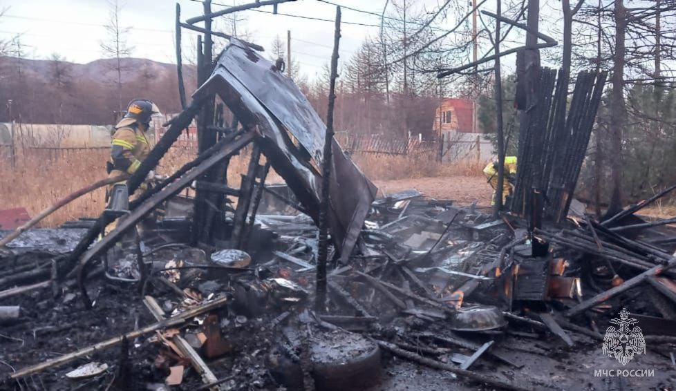 В Магадане на Марчеканском шоссе горело бесхозное строение и сухая трава на площади 40 квадратных метров.