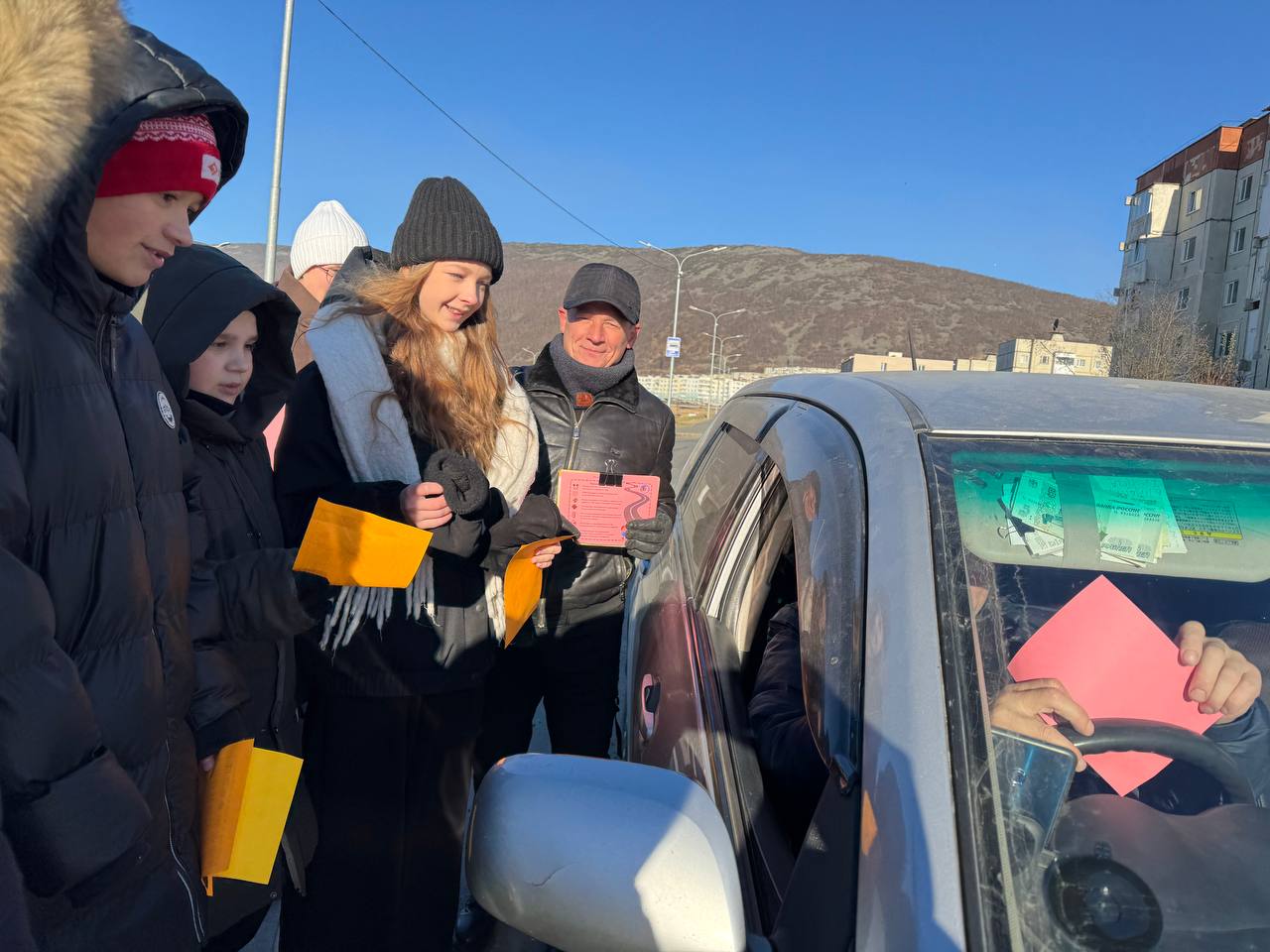 Участники слета юных инспекторов движения и сотрудники Госавтоинспекции Магаданской области провели профилактическую акцию «Вместе за безопасность» в парке «Маяк».