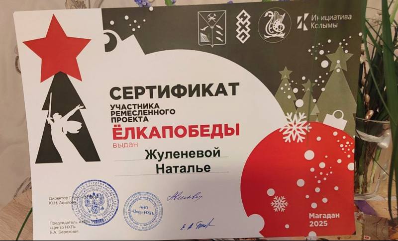 Медсестра медико-санитарной части УМВД России по Магаданской области Наталья Жуленева приняла участие в ремесленном проекте «Елка Победы»