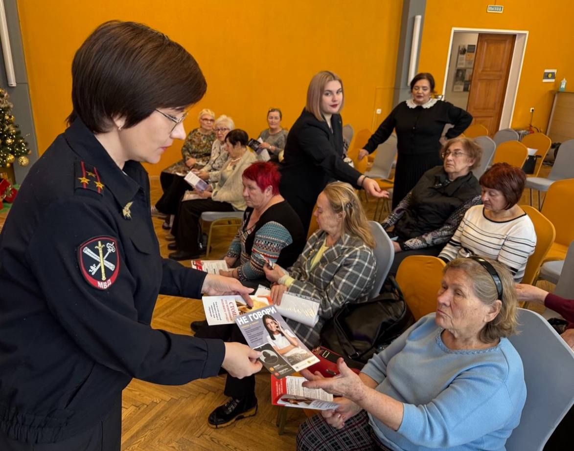Участникам мероприятия Ксения Петровна раздала тематические памятки, проинформировав о работе горячей линии по противодействию дистанционным мошенничествам – 122 (добавочный 4).