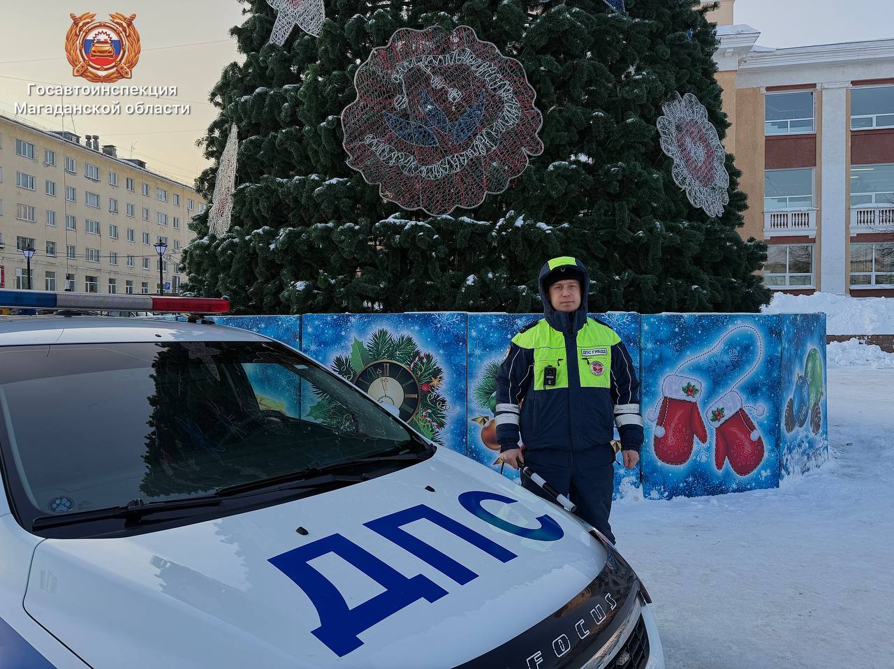 Инспектор ДПС Госавтоинспекции Магаданской области Андрей Ткаченко поздравляет всех с наступающим Новым годом и призывает водителей к неукоснительному соблюдению Правил дорожного движения! Будьте бдительны за рулем, не превышайте скоростной режим и не совершайте необдуманных маневров за рулем транспортного средства!