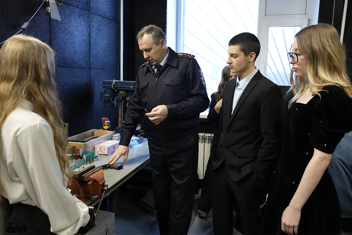 Майор полиции Екатерина Бурнашева рассказала об основных задачах и направлениях деятельности подразделения. Капитан полиции Виталий Лебига объяснил, как проводятся баллистические и трасологические экспертизы, позволяющие определить тип оружия, направление и дальность выстрела.
