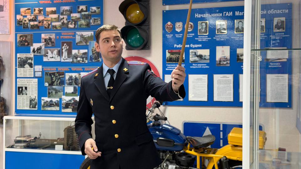 Инспектор отдела МПО Управления по работе с личным составом УМВД старший лейтенант полиции Георгий Воронов провел увлекательную экскурсию для ребят, рассказав об истории становления органов внутренних дел на Колыме. Учащиеся ознакомились с уникальными экспонатами, узнали о быте советских милиционеров, подвигах героев, погибших при исполнении служебного долга.