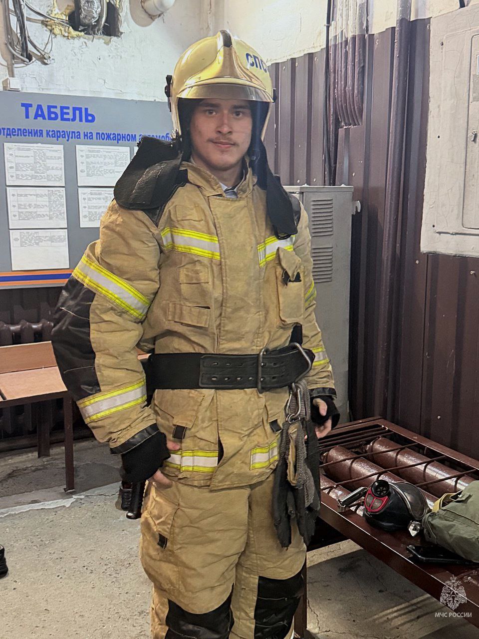 дали примерить боевую одежду огнеборцев;