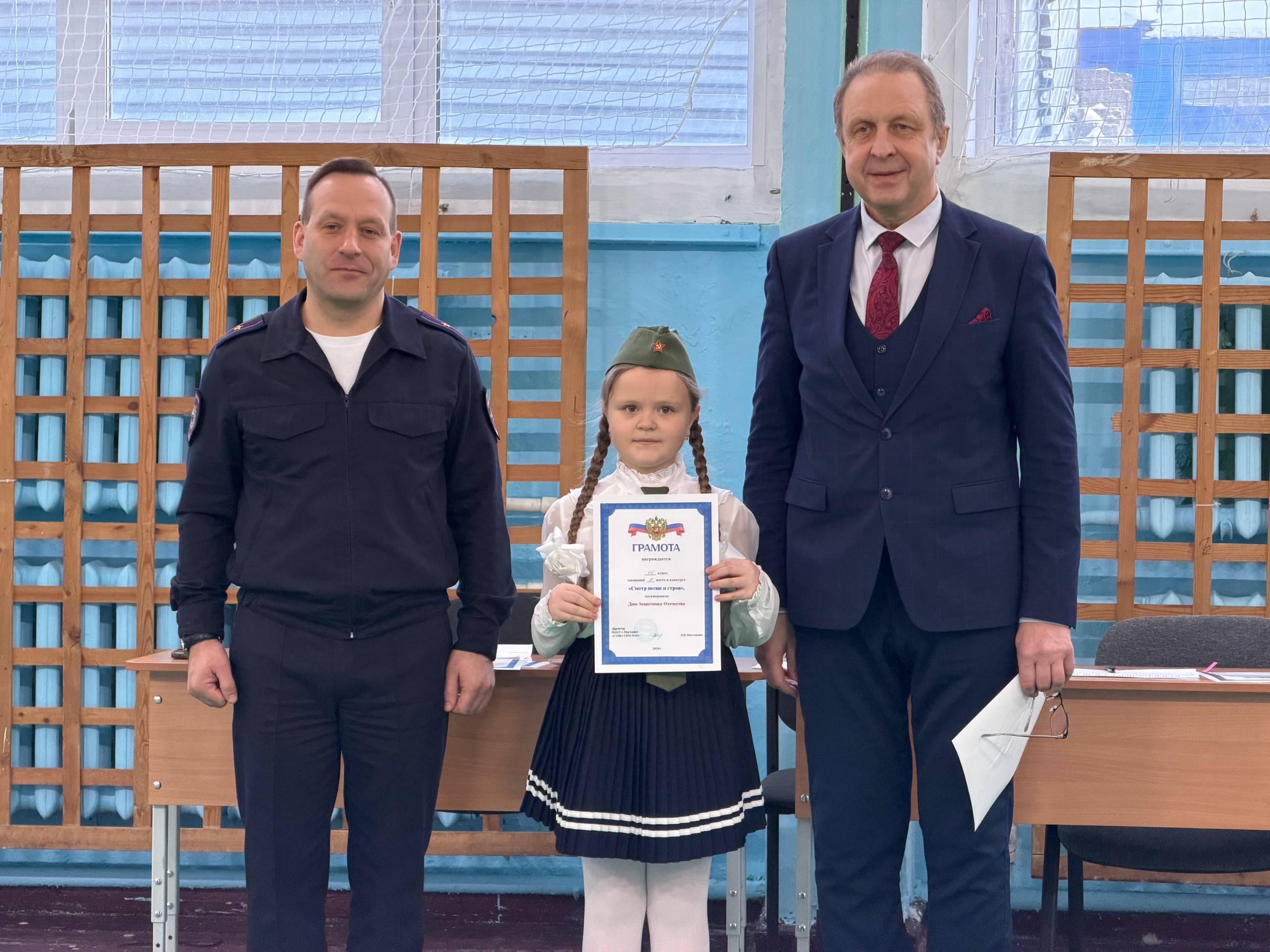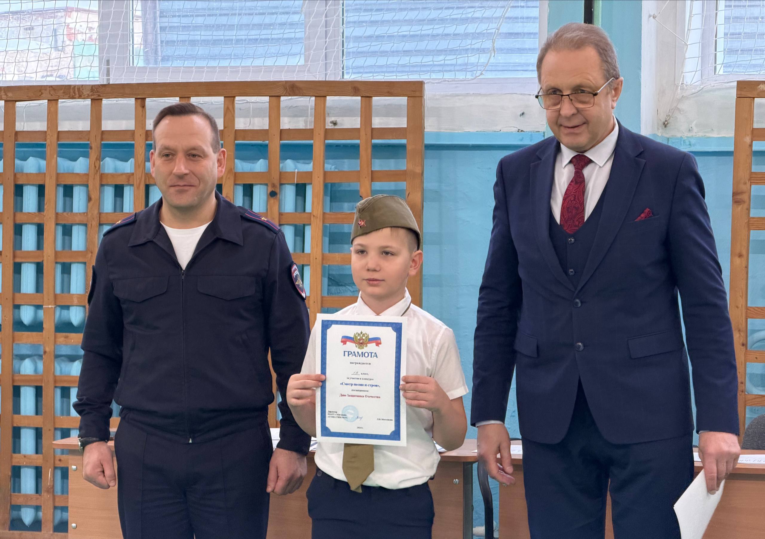 В преддверии Дня защитника Отечества в магаданской школе № 15 прошел смотр песни и строя среди учащихся.В качестве жюри на конкурс были приглашены преподаватель Центра профессиональной подготовки УМВД России по Магаданской области Максим...