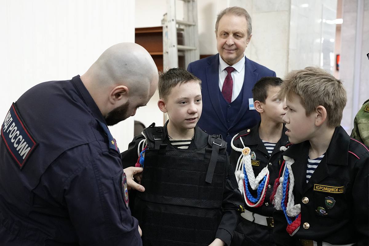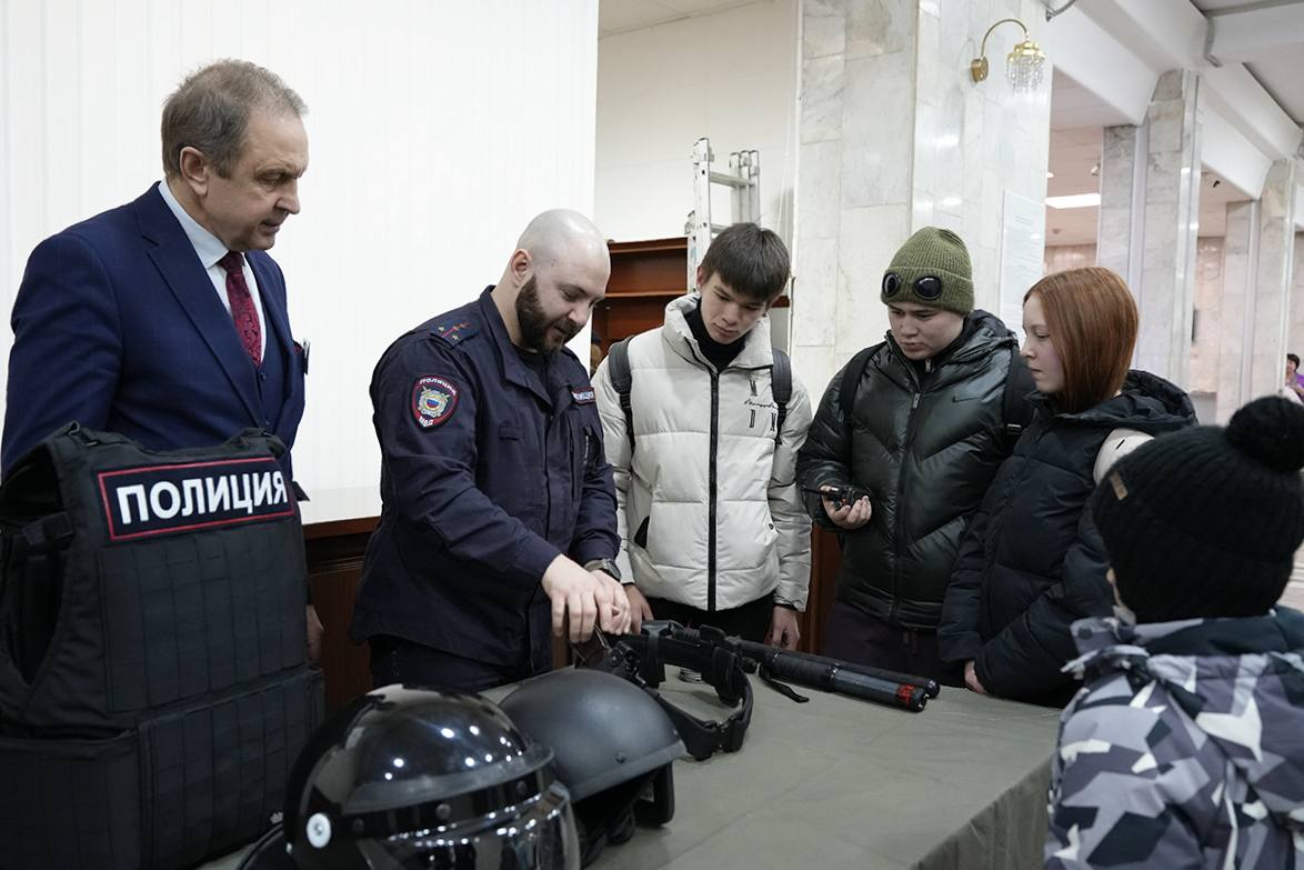 Стражи порядка показали подросткам оружие и специальные средства, которые используют полицейские при выполнении служебных обязанностей. Все посетители выставки смогли посмотреть и даже примерить настоящую экипировку сотрудников полиции.
