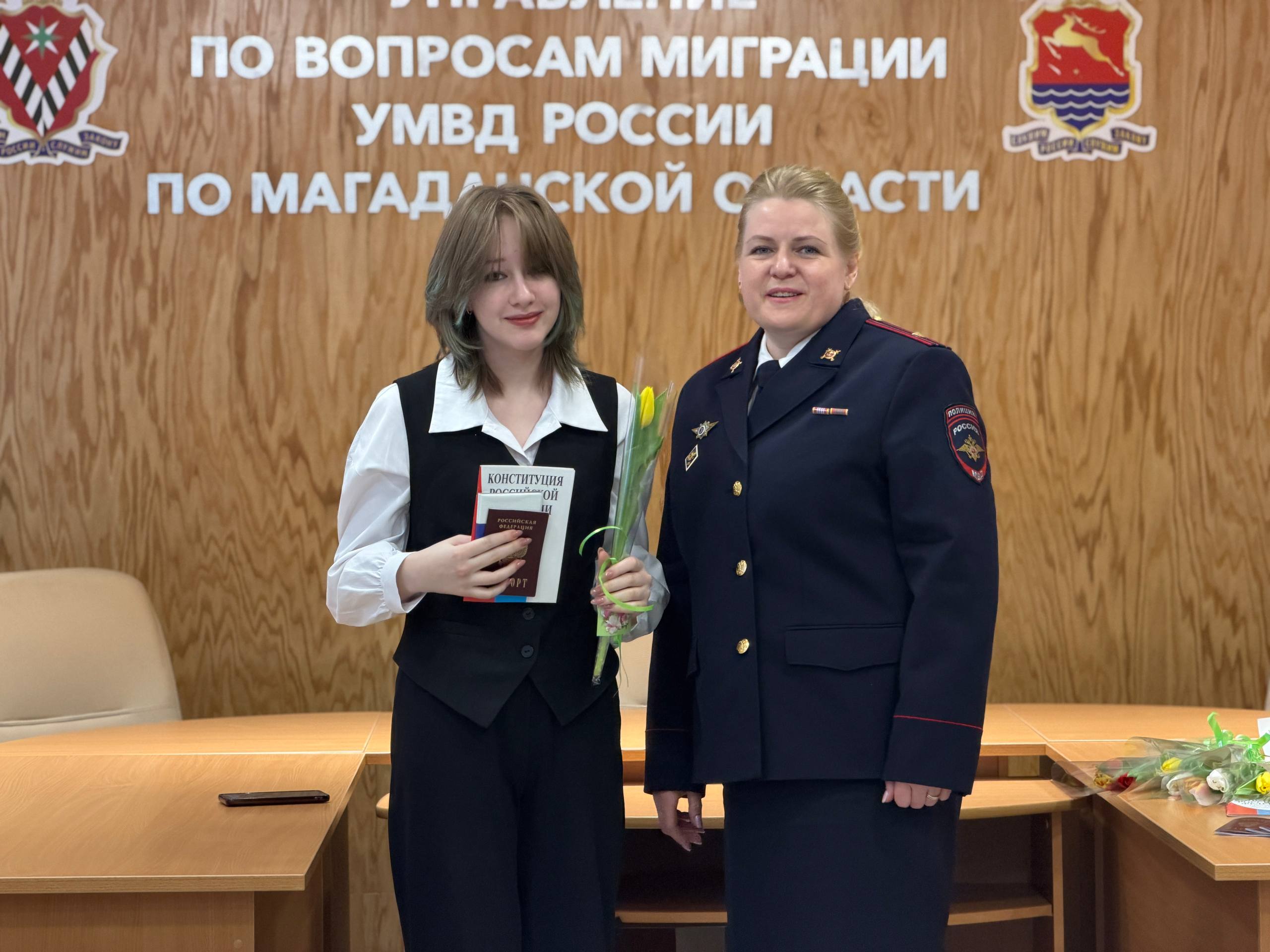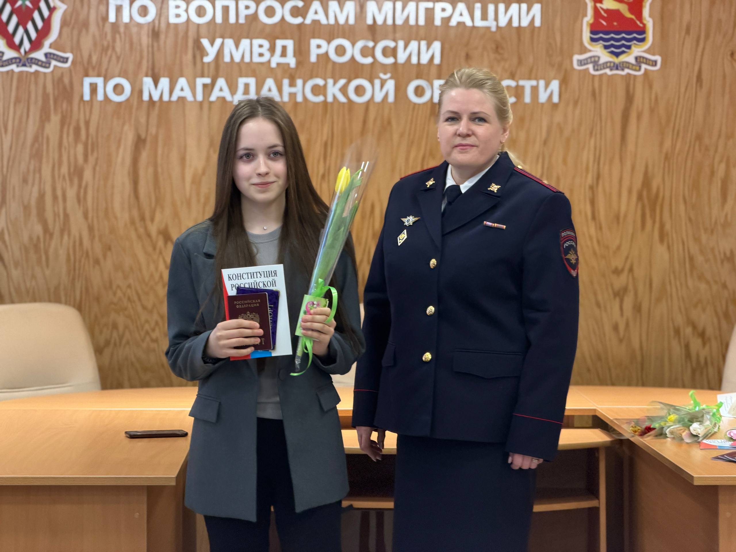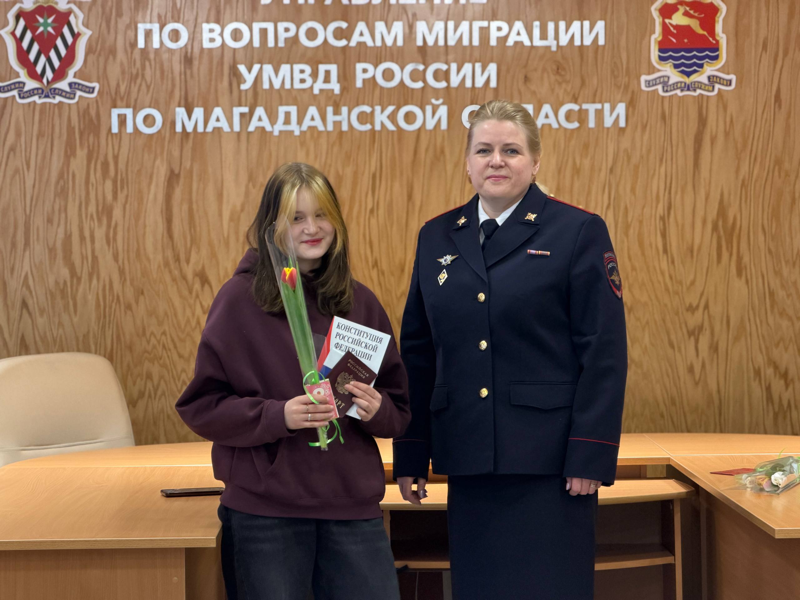 В Магаданской области в преддверии 8 Марта полицейские и общественники вручили паспорта девушкам
