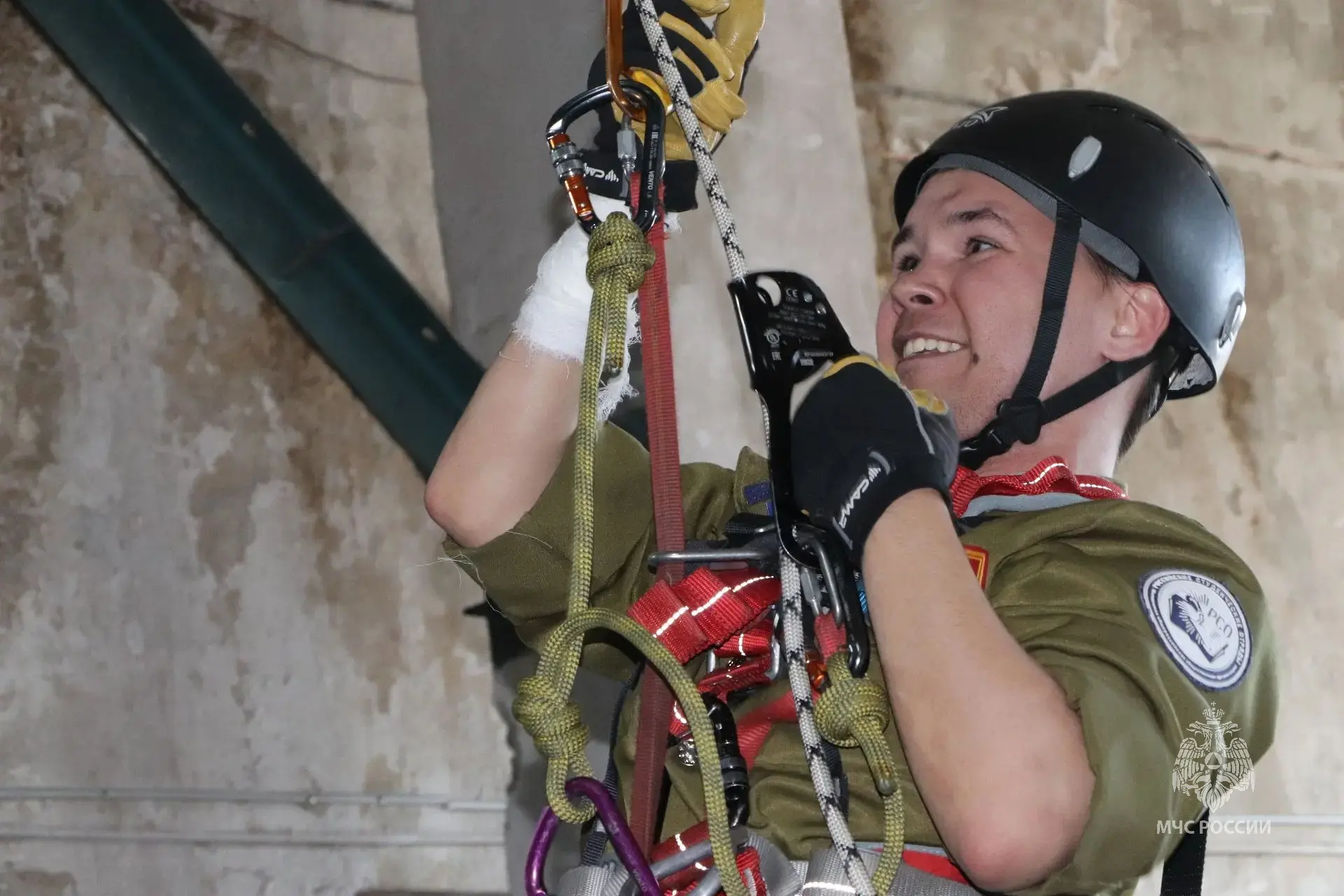 Альпинистская подготовка необходима спасателям для работы в горной местности, эвакуации людей с высотных зданий или организации переправы через горные реки и ущелья. На занятиях разобрали виды страховочных систем и правила их использования, основы техники подъёма и спуска по верёвке, правила командной работы при выполнении высотных работ.