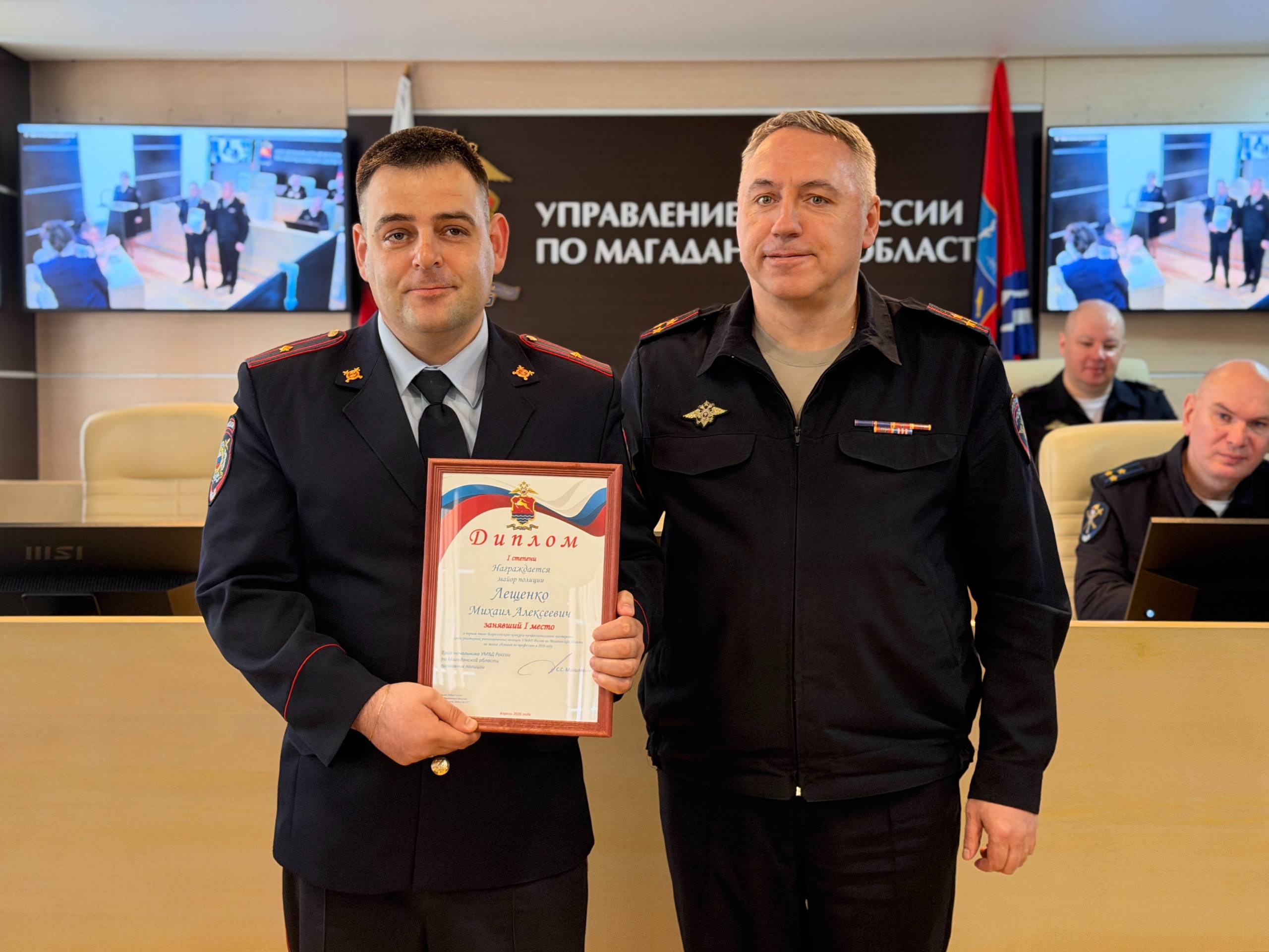 Временно исполняющий обязанности начальника УМВД России по Магаданской области Сергей Могилевич вручил победителю диплом и пожелал удачи во втором этапе конкурса, который пройдёт в городе Хабаровске на базе Дальневосточного юридического института МВД России имени И.Ф. Шилова.