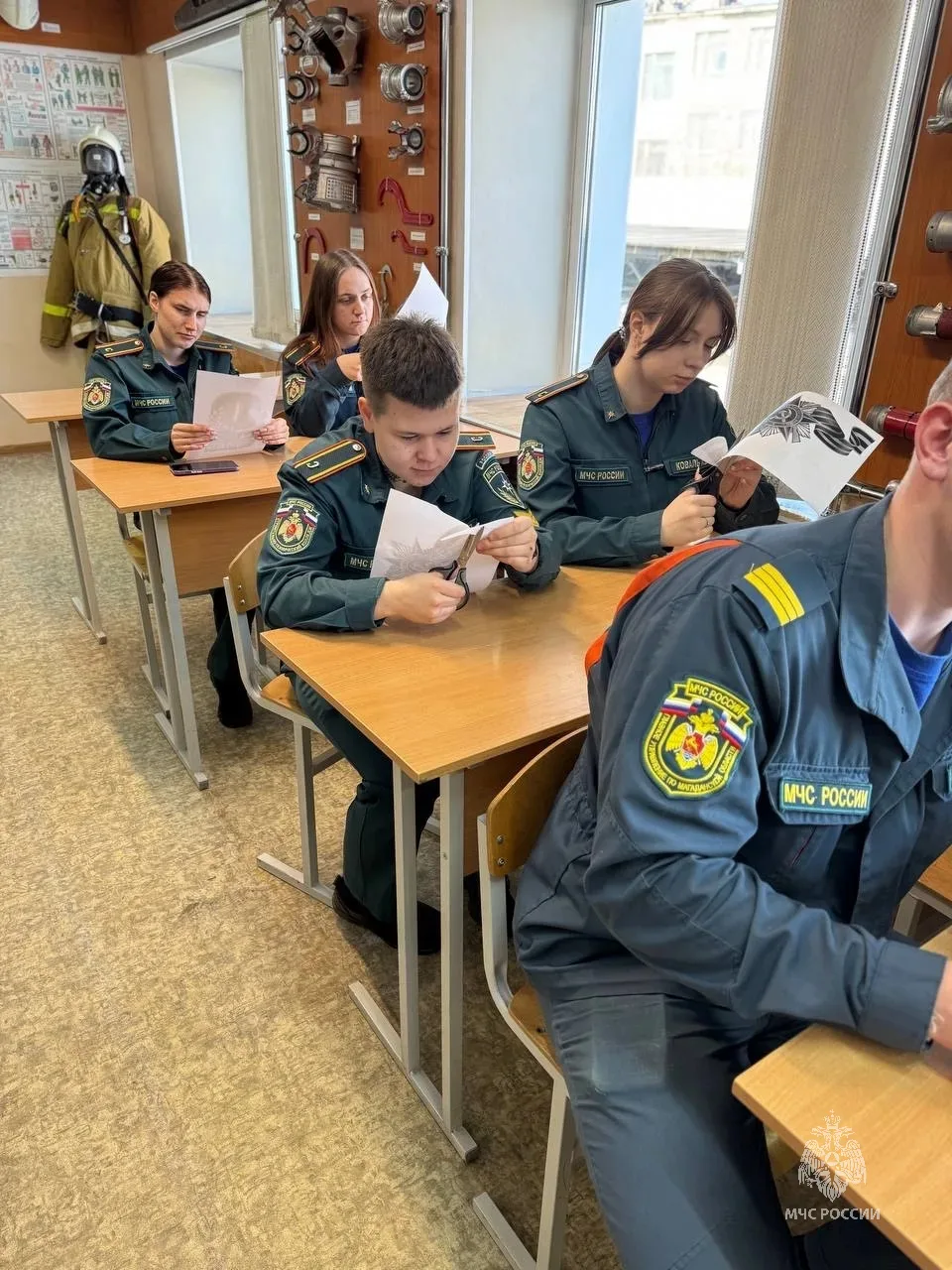 Молодежный совет Главного управления привлек к этой работе юных спасателей. Студенты промышленного техникума помогли огнеборцам СПСЧ разместить на окнах праздничную символику.