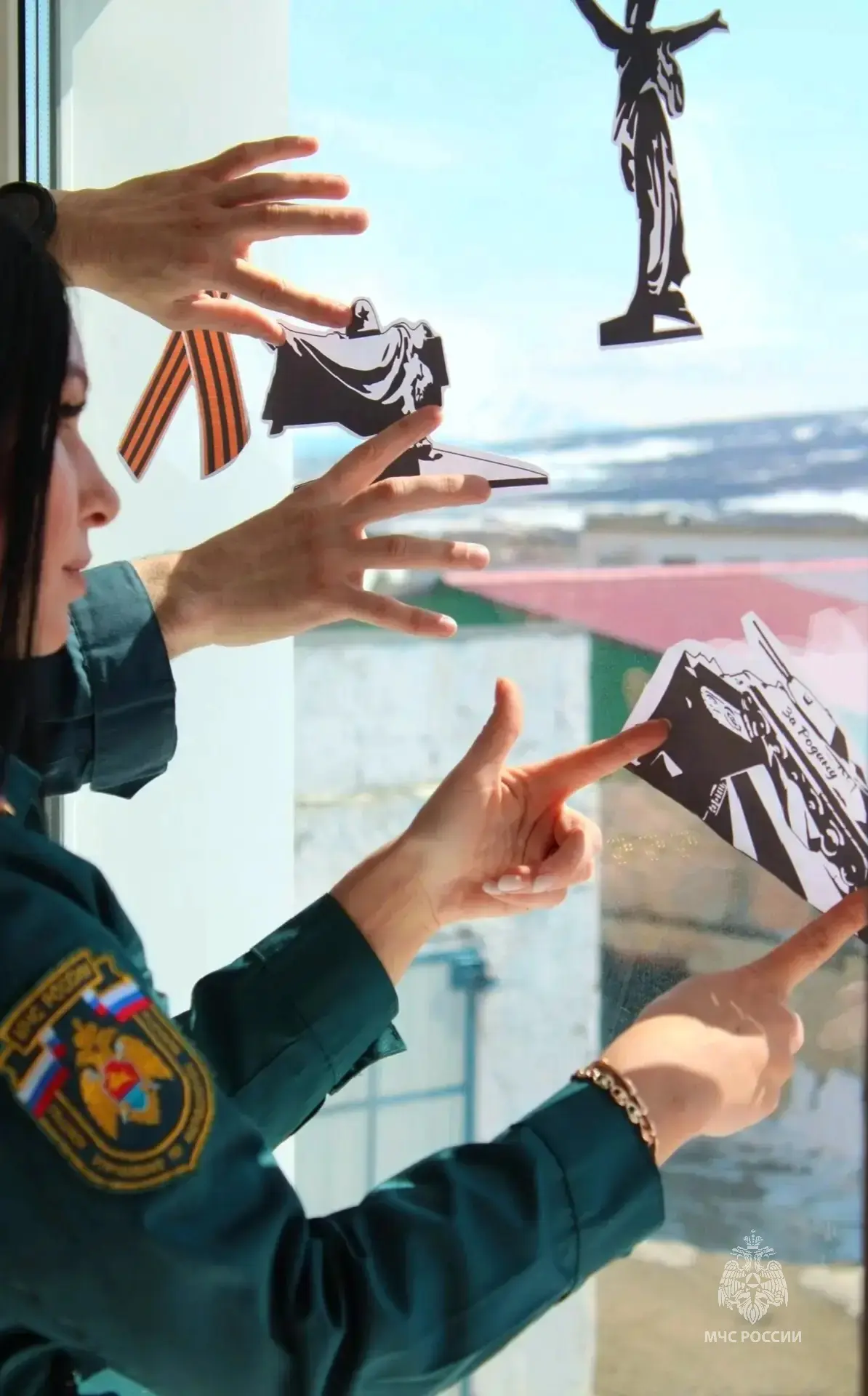 Подразделения МЧС России на Колыме присоединяются к мероприятию и оформляют окна своих кабинетов тематическими изображениями, посвященными тематике Победы.