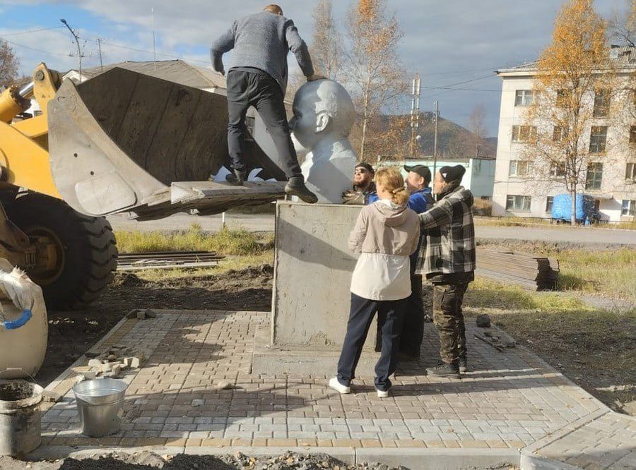 Скоро их в поселке будет дваМассивную скульптуру весом около 100 килограммов еще зимой привезли в поселок из Магадана по Колымской трассе. Этот железный бюст давно хранился в офисе регионального отделения КПРФ, он не новый...