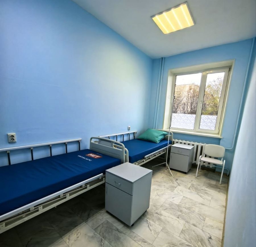 В апреле этого года поликлиника Центра дерматовенерологии переехала из «Восточной медицины» и уступило место реабилитационному отделению Городской поликлиники Магадана. Сейчас в здании идет ремонт – уже преобразилось несколько кабинетов. Коридоры будут делать в последнюю очередь, ведь по ним постоянно перемещают строительные материалы и инструменты, ходят рабочие.