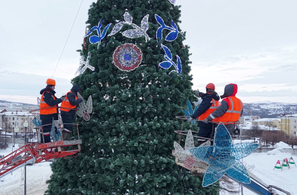 Вы можете видеть, как специалисты проводили последние приготовления. В этом году главная зеленая красавица Магадана установлена на Театральной площади. И ее запуск назначен на 20 декабря.