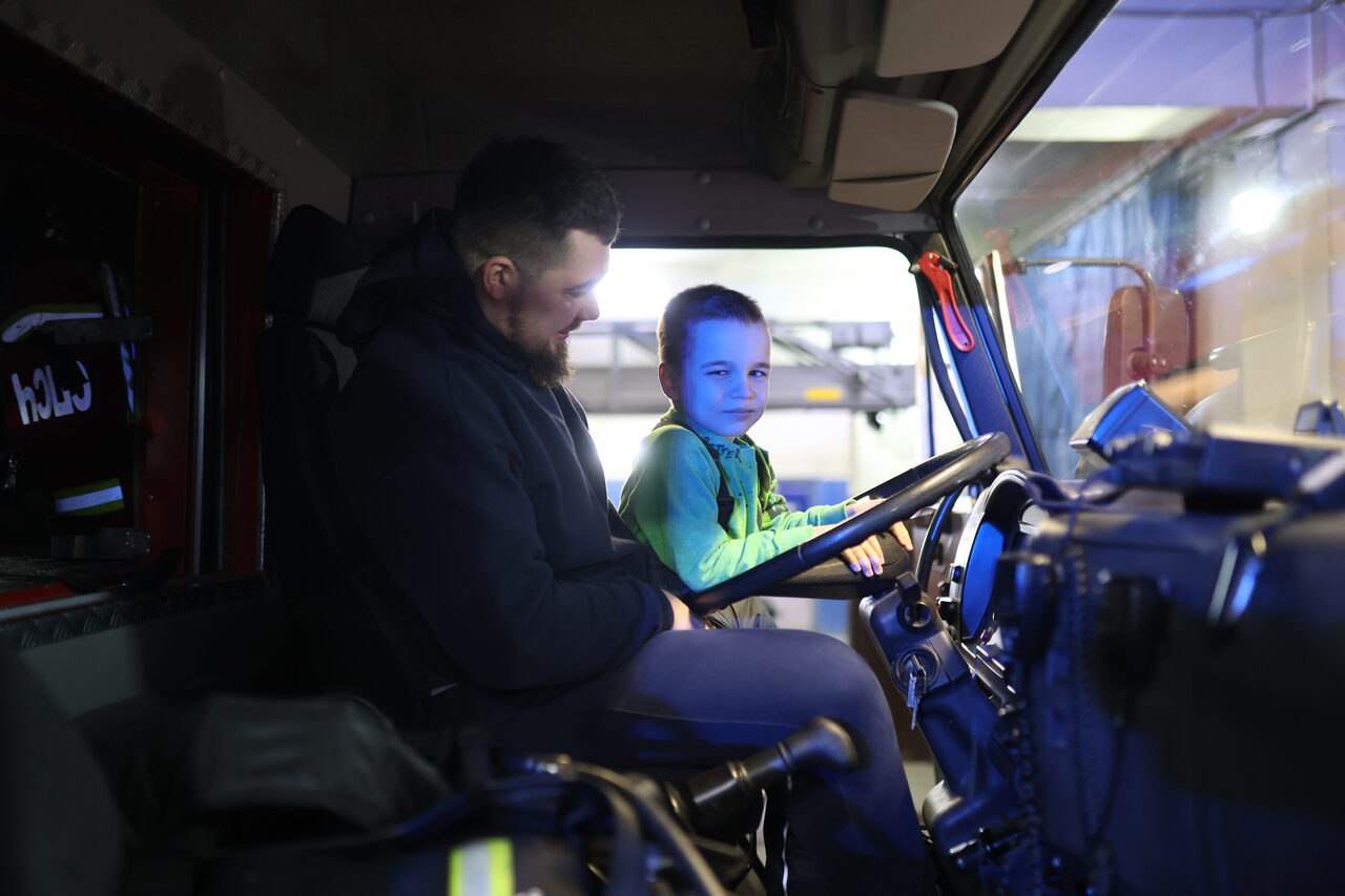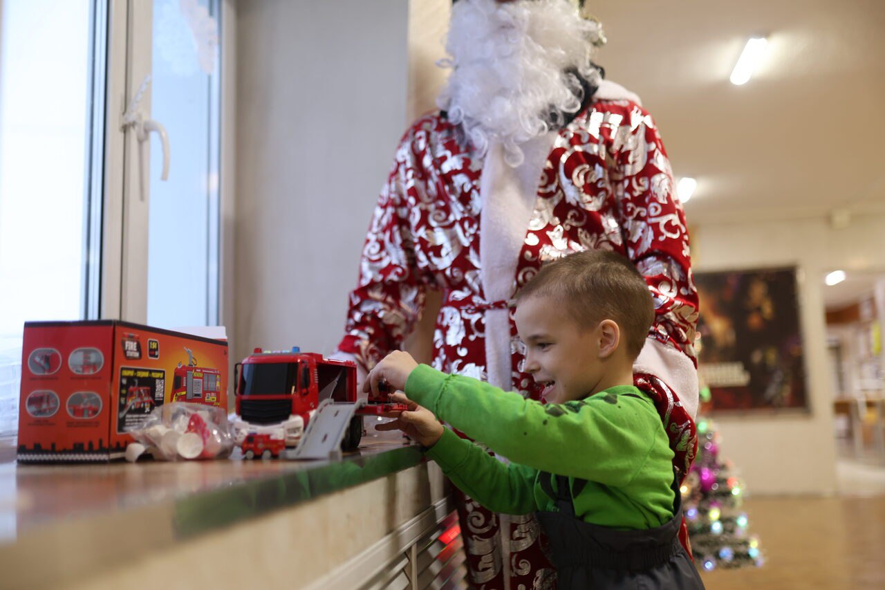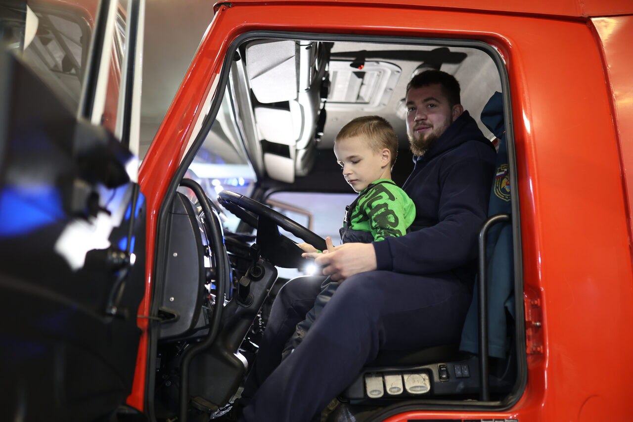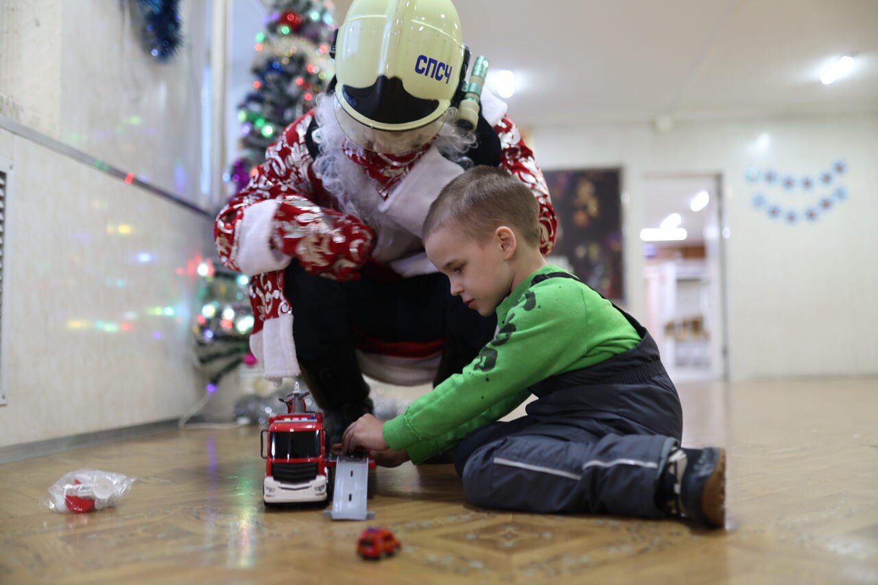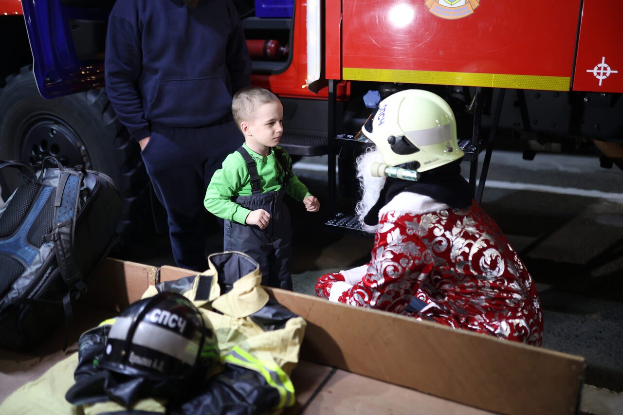 Савелий сразу открыл коробку и начал изучать механизм машины. Потом для почетного гостя сотрудники специализированной пожарно-спасательной части устроили персональную экскурсию. Ему показали технику, которая стоит в огромном гараже, он побывал в диспетчерской, осмотрел пульт, принимающий тревожные вызовы. Кульминацией стал момент, когда Савелий с Николаем Геннадьевичем оказались в кабине настоящей пожарной машины с сиреной и мигалками. Эту экскурсию проводили Дед Мороз и дежурные части.