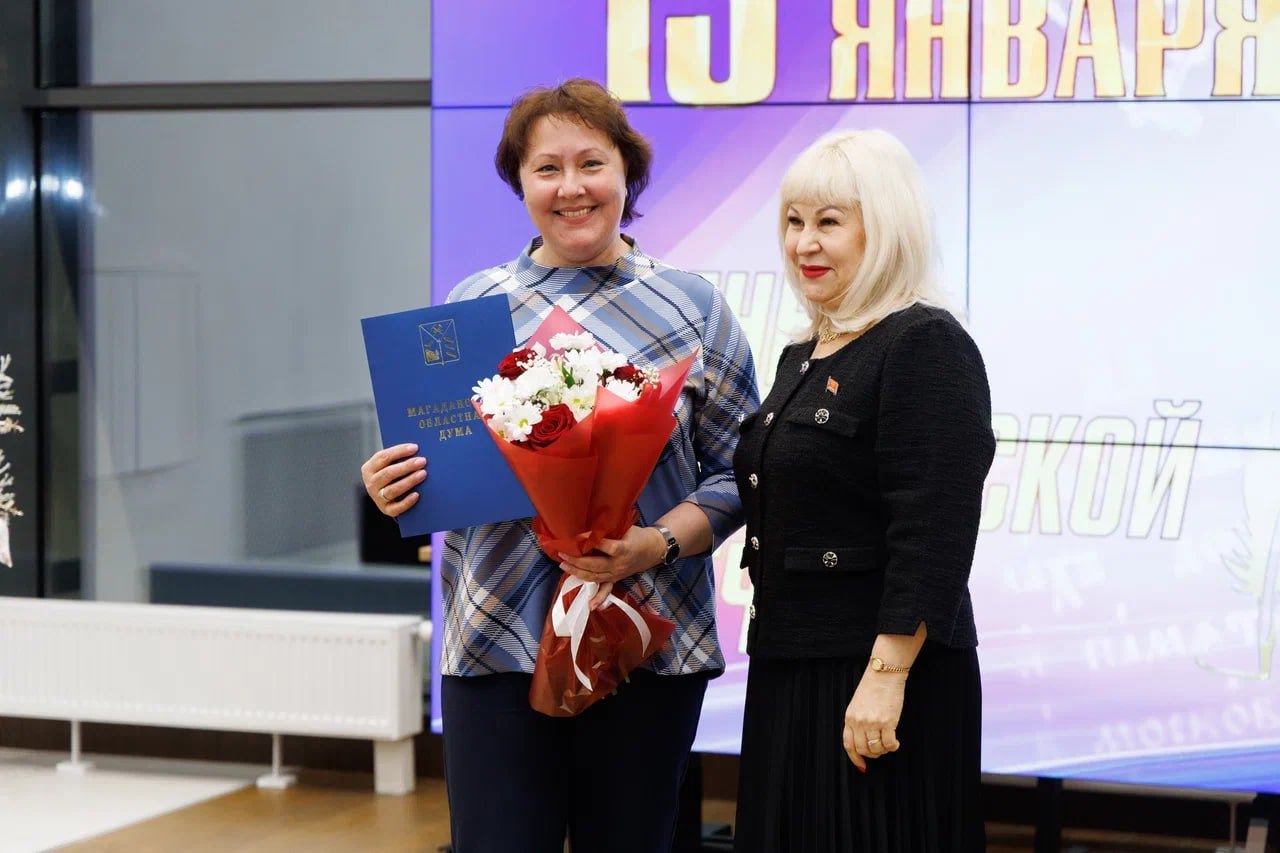 Благодарностью Председателя Магаданской областной Думы наградили редактора отдела дизайнеров «Магаданской правды» Екатерину Хакназарову, а Благодарственным письмом Магаданской областной Думы отметили редактора отдела корректуры «Магаданской правды» Ксению Репичеву.