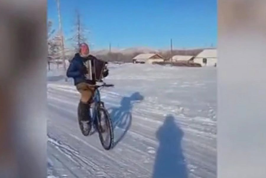 «Я из Батагая выдвинулся на велосипеде, по дороге у меня лопнуло колесо заднее, потому что мороз в среднем тут составил -50 градусов сегодня. Я уже собирался разводить костер, потому что понимал, машины здесь бывают очень редко, тем более в выходные. Я думал, что ждать буду до вечера: только наломал дров для костра, как сразу приехал дальнобойщик Владимир. Загрузили велосипед сзади, и вот так с дальнобойщиком на попутках я добрался до Верхоянска», - рассказал Клим Калужских в беседе с ТАСС.