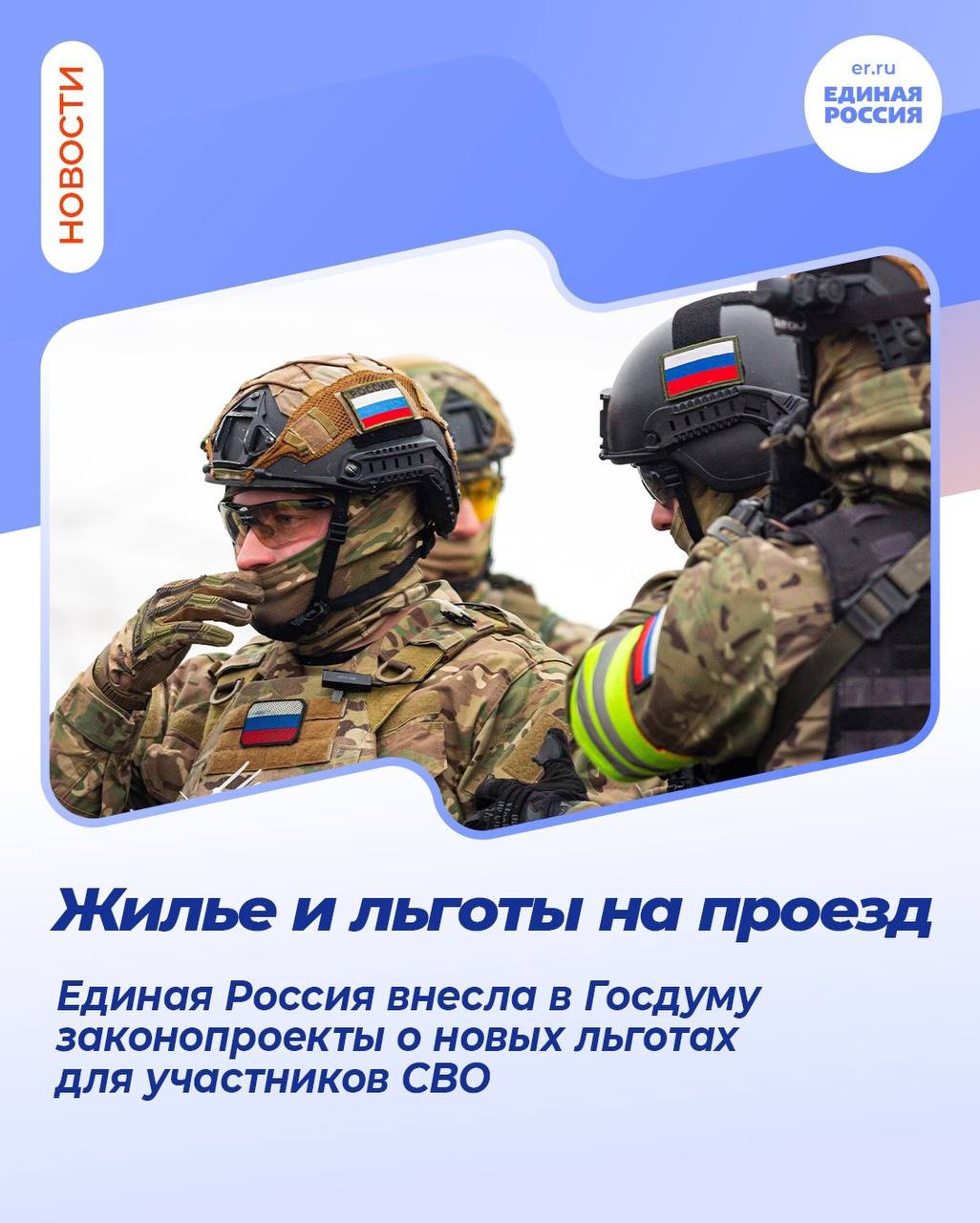 Единая Россия внесла в Госдуму законопроекты о расширении социальных гарантий участников СВО