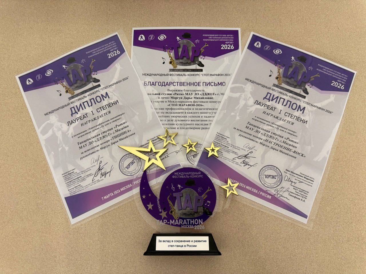 Танцевальная студия «Ритм» в составе делегации от Магаданской области приняла участие в Международном фестивале-конкурсе «СТЕП-МАРАФОН 2026» в Москве.