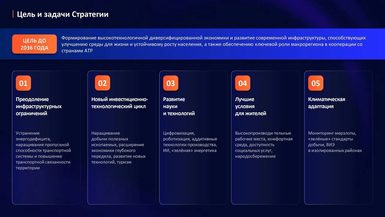 В числе ключевых целей – формирование экономики будущего, повышение качества жизни, подготовка кадров и запуск высокотехнологичных проектов. Разработкой документа занимается «Востокгосплан» совместно с Минвостокразвития России.