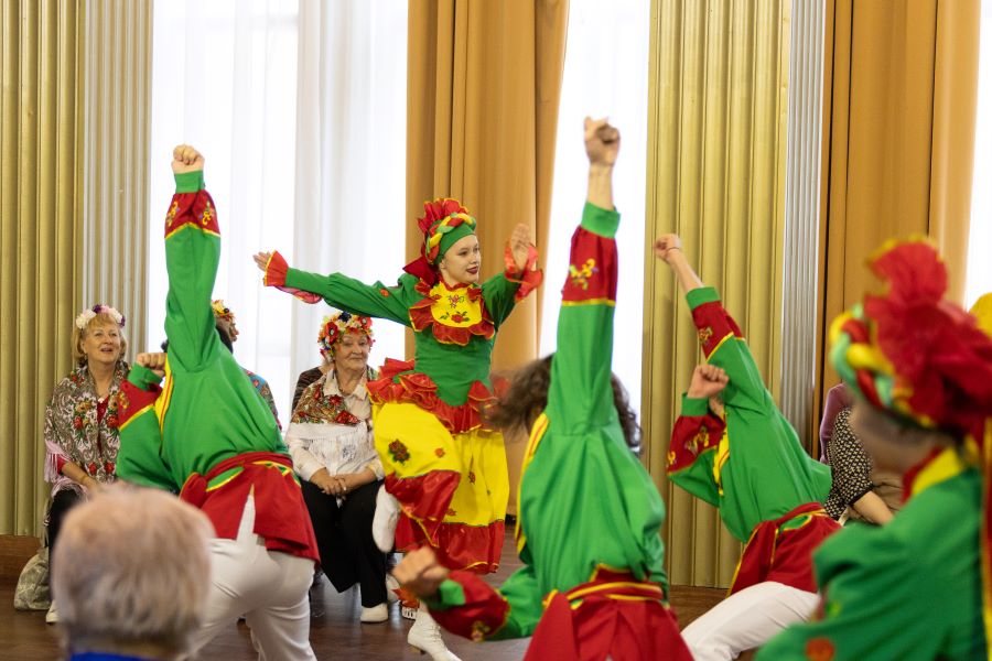 Главными гостями праздника стали пенсионеры – они с улыбками на лицах ждали начала. А когда на импровизированную сцену вышел народный ансамбль академического народного танца «Колымские звёздочки», едва ли сами не пустились в пляс.
