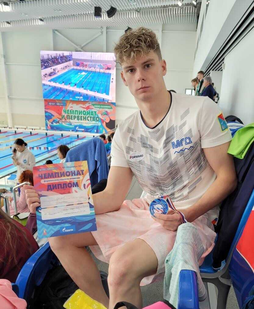 Золото у Артема Гальчина на стометровке вольным стилем среди юношей 14 -15 лет.