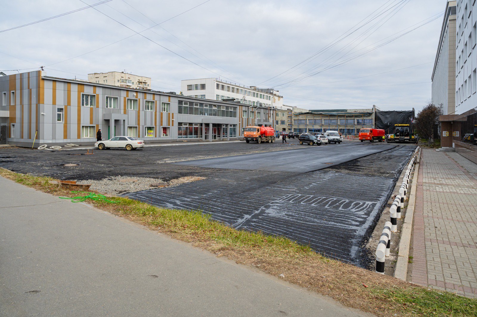 Сейчас заливают асфальтобетонное покрытие на подготовленное основание.