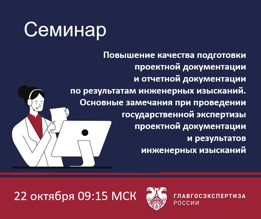 22 октября Учебный центр Главгосэкспертизы России проведет семинар «Повышение качества подготовки проектной документации и отчетной документации по результатам инженерных изысканий. Основные замечания при проведении государственной экспертизы проектной документации и результатов инженерных изысканий». Начало в 09:15.