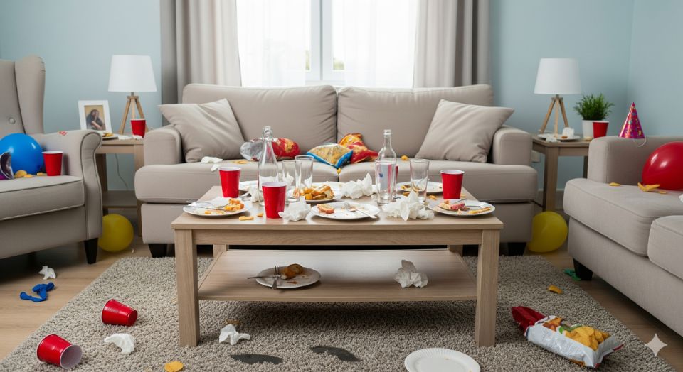 Первое правило — не корить себя за хаос. Беспорядок после вечеринки — это свидетельство весёлого времяпрепровождения. Если дом выглядит как после урагана, это не провал хозяина, а следы радости и веселья. Сложнее убирать, если подходить к этому как к строгой задаче. Лучшая стратегия — это сохранять позитив. Наличие плана значительно упростит процесс.
