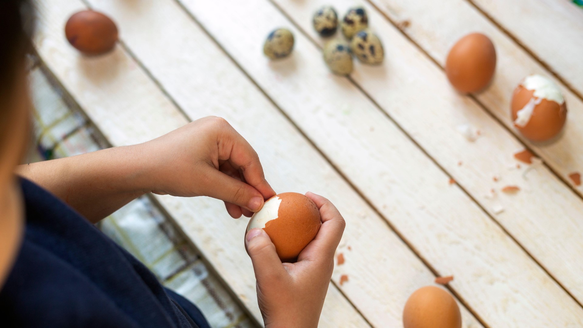 Перед тем как отправить яйца вариться, нужно взять толстую иглу или маленький нож. Сделайте отверстие с тупого края, где собирается воздух. Действуйте аккуратно: дырочка должна быть совсем крохотной.