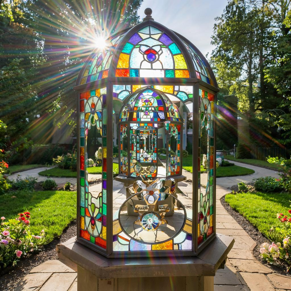 Принцип действия садового калейдоскопа основан на многоразовом отражении. Самое замечательное в нем то, что при взгляде в призму можно увидеть не только окружающие объекты, но и их многочисленные отражения, создающие симметричные узоры, которые меняются в зависимости от угла обзора и освещения. Яркое солнце наполняет калейдоскоп яркими цветами, а пасмурная погода создает более мягкие тона.