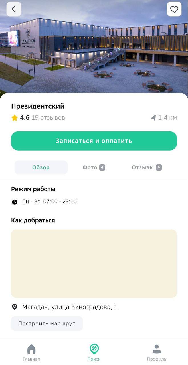 Всё достаточно удобно и просто: в приложении нужно открыть вкладку «Президентский», нажать на кнопку «Записаться и оплатить», выбрать, что именно хотите посетить — аквааэробику, аквапарк или бассейн.