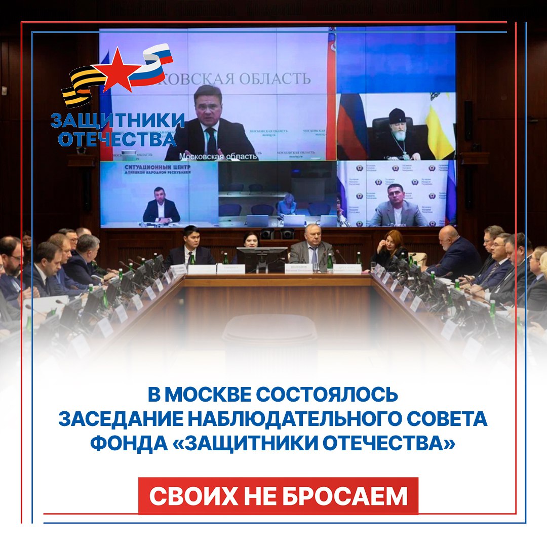 Очередное заседание Наблюдательного совета Государственного фонда «Защитники Отечества» состоялось в Москве. В нем приняли участие в том числе Первый заместитель руководителя Администрации Президента РФ Сергей Кириенко и статс-секретарь – заместитель Министра обороны РФ, председатель фонда «Защитники Отечества» Анна Цивилева.