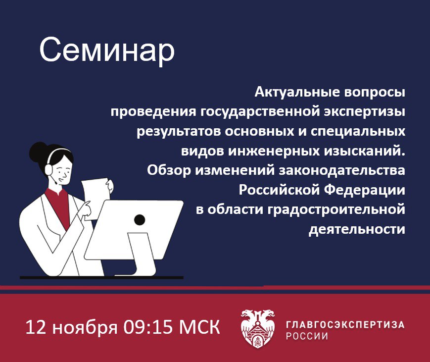 12 ноября Учебный центр Главгосэкспертизы России проведет семинар «Актуальные вопросы проведения государственной экспертизы результатов основных и специальных видов инженерных изысканий. Обзор изменений законодательства Российской Федерации в области градостроительной деятельности». Начало в 09:15.