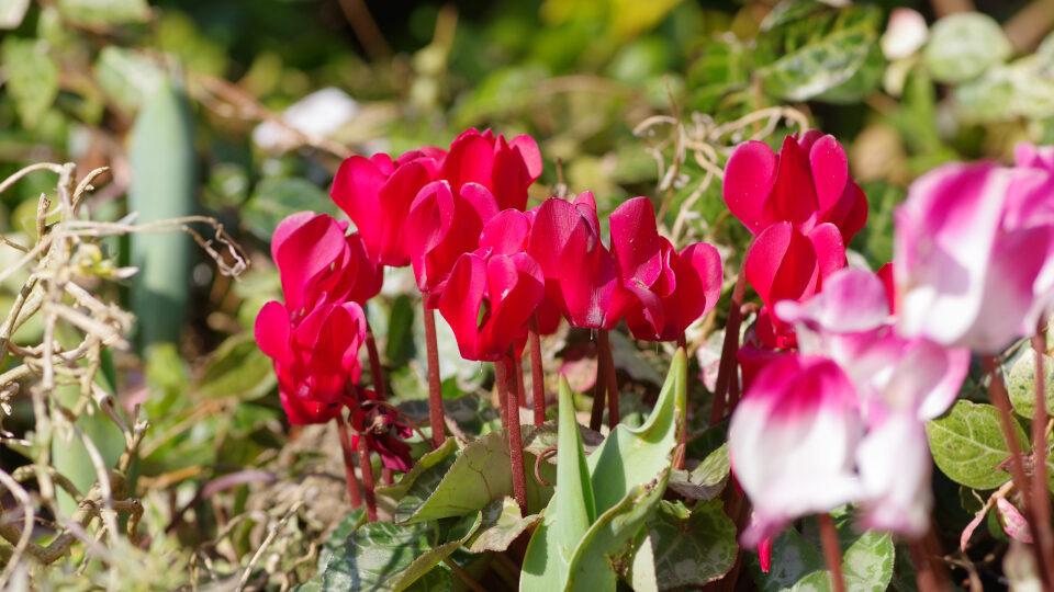 Цикламены насчитывают около двадцати видов, из которых самыми популярными в домашних условиях являются персидский цикламен и европейский цикламен. Первый поражает своим видом благодаря крупным сердцевидным листьям, а второй привлекает внимание более скромными, но не менее элегантными цветами – от розового до пурпурного.