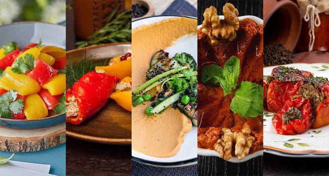 - Запеченные перцы с орехами: перцы, запечённые до золотистой корочки, подаются с ароматной ореховой пастой. Это закуска, которая изысканна по вкусу и может служить отличным дополнением к вашему основному блюду или же быть самостоятельным лакомством.