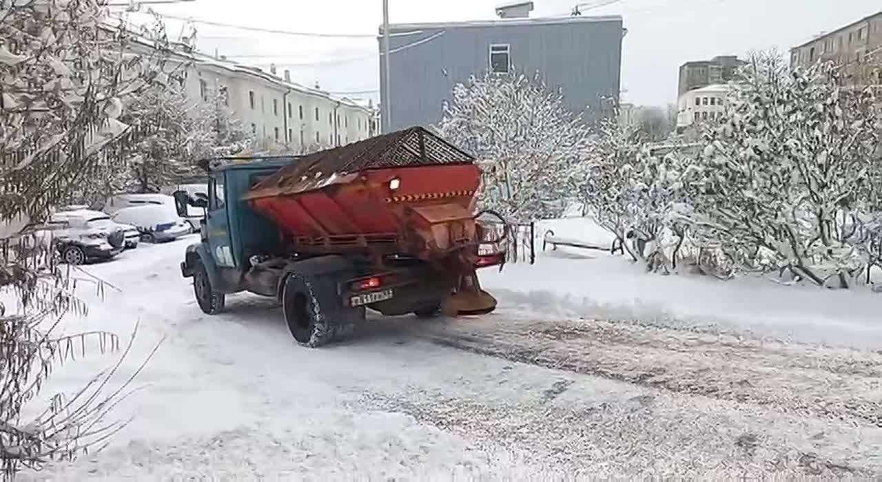 Техника выходит на улицы каждые несколько часов. Там, где машины не могут проехать, работают дворники вручную.