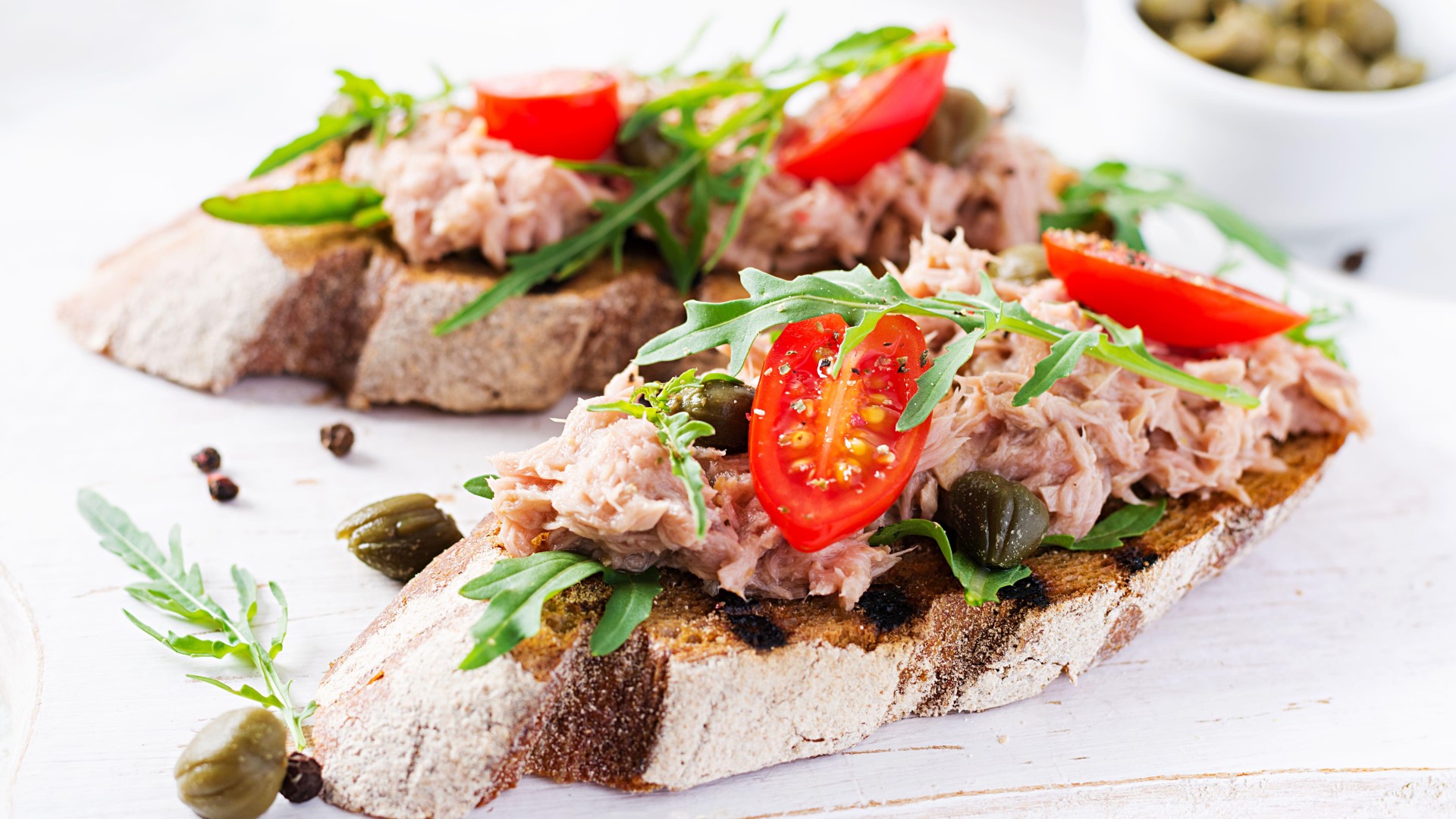 На каждый ломтик хлеба выложите тунца, сверху добавьте несколько кружочков томата и украсьте листьями рукколы, рекомендует портал «Аргументы и факты». Приятного аппетита!