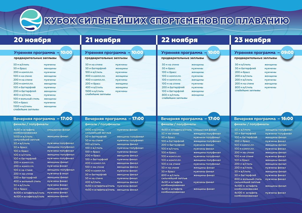 На протяжении четырех дней спортсмены будут бороться за медали в индивидуальных заплывах и эстафетном плавании.