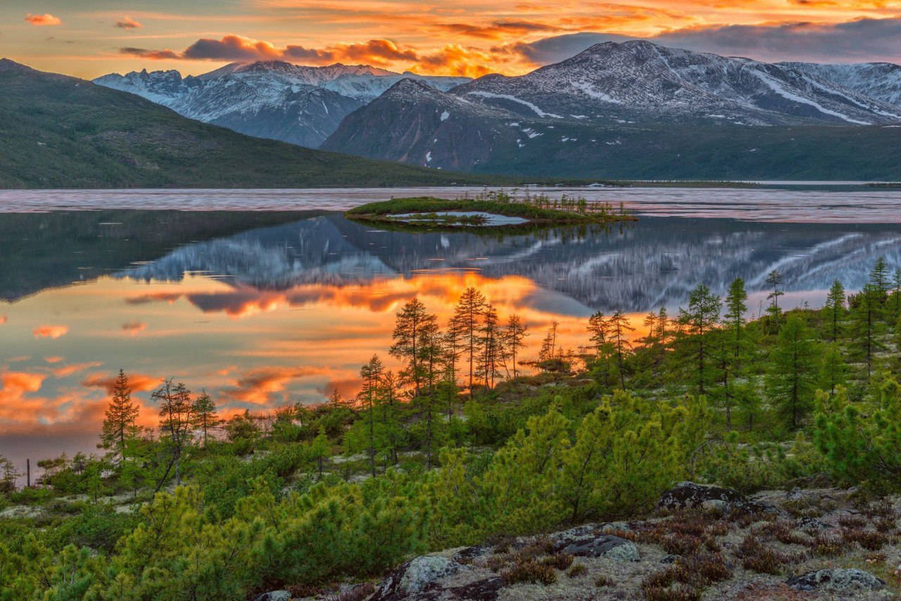 Озеро окружено горами и тундровыми лесами. Климат суровый, с настоящими зимними морозами до -40°F и ниже, а лето не теплее 59°F.