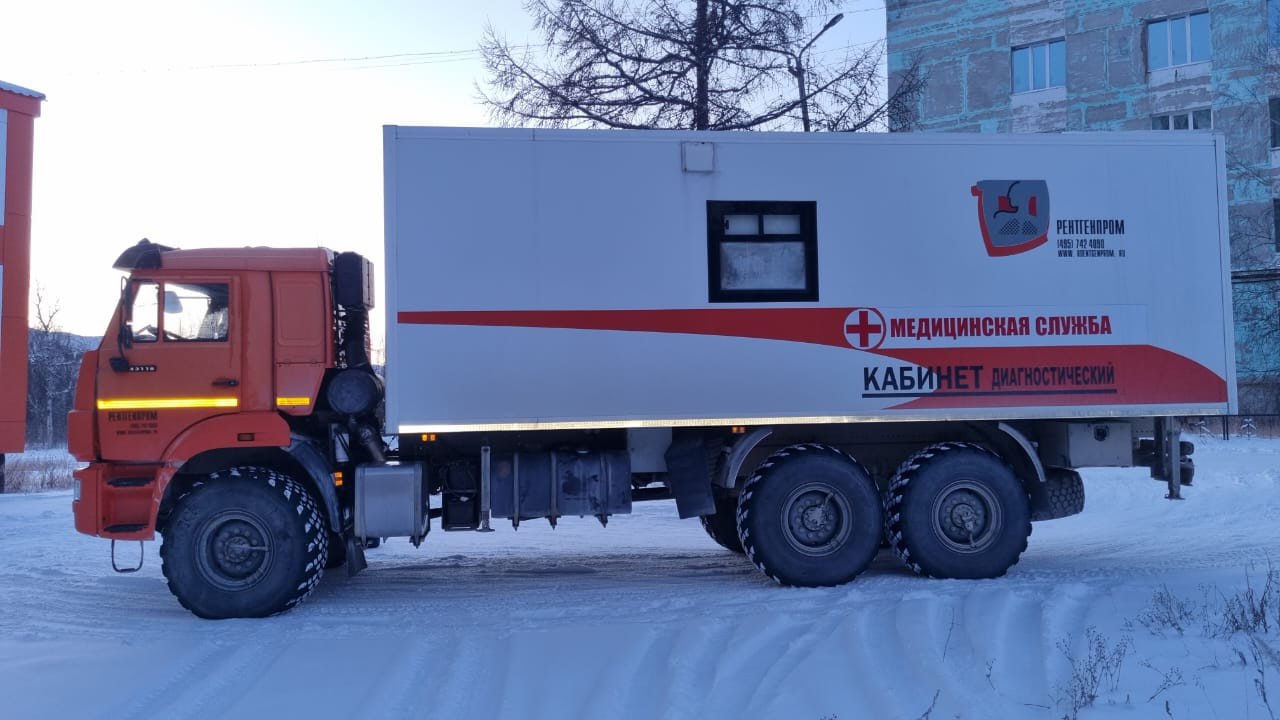 Камаз с флюорографической установкой отогрели. Около получаса назад машина своим ходом добралась до Ягодного.