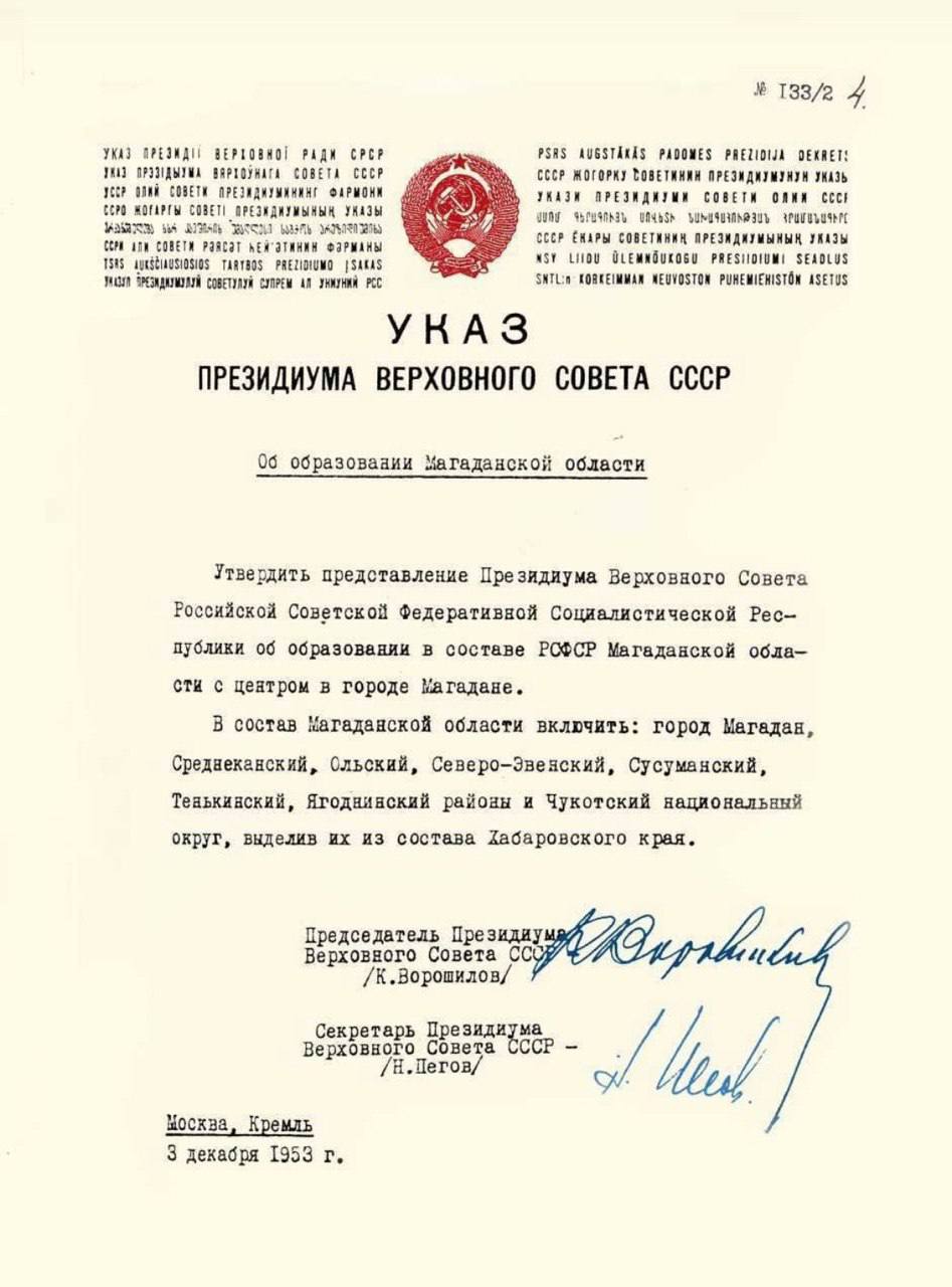 72 года назад, 3 декабря 1953, образована Магаданская область.