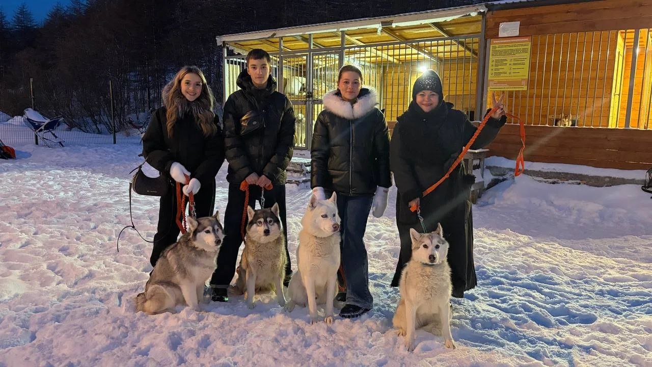 Для гостей мы провели небольшую ознакомительную прогулку: показали ключевые локации парка, познакомили с собаками ездовых пород, поговорили об истрии коренных народов и о городе Магадане.